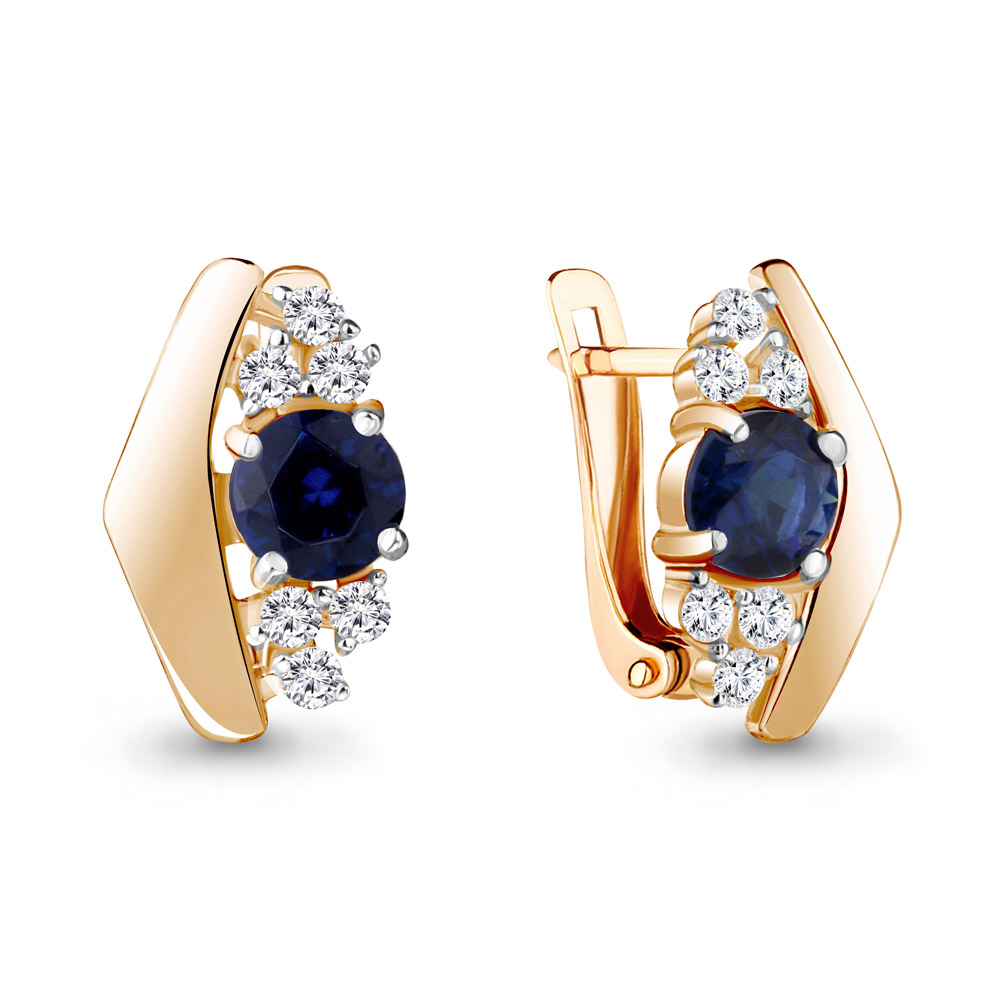 44816Б Серьги из Серебра с наносапфирами, фианитами