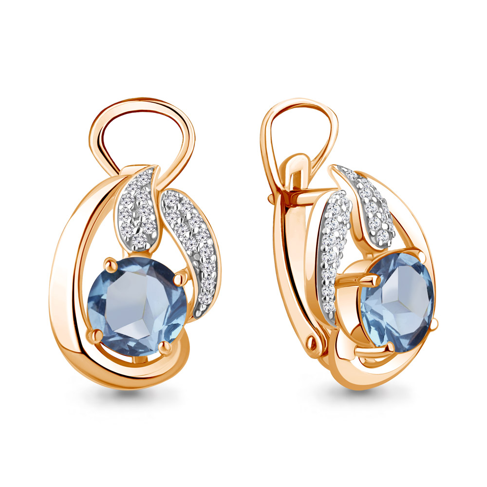 4486905А Серьги из Серебра с топазами свисс блю, фианитами