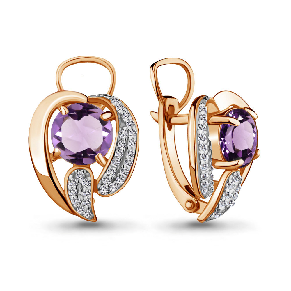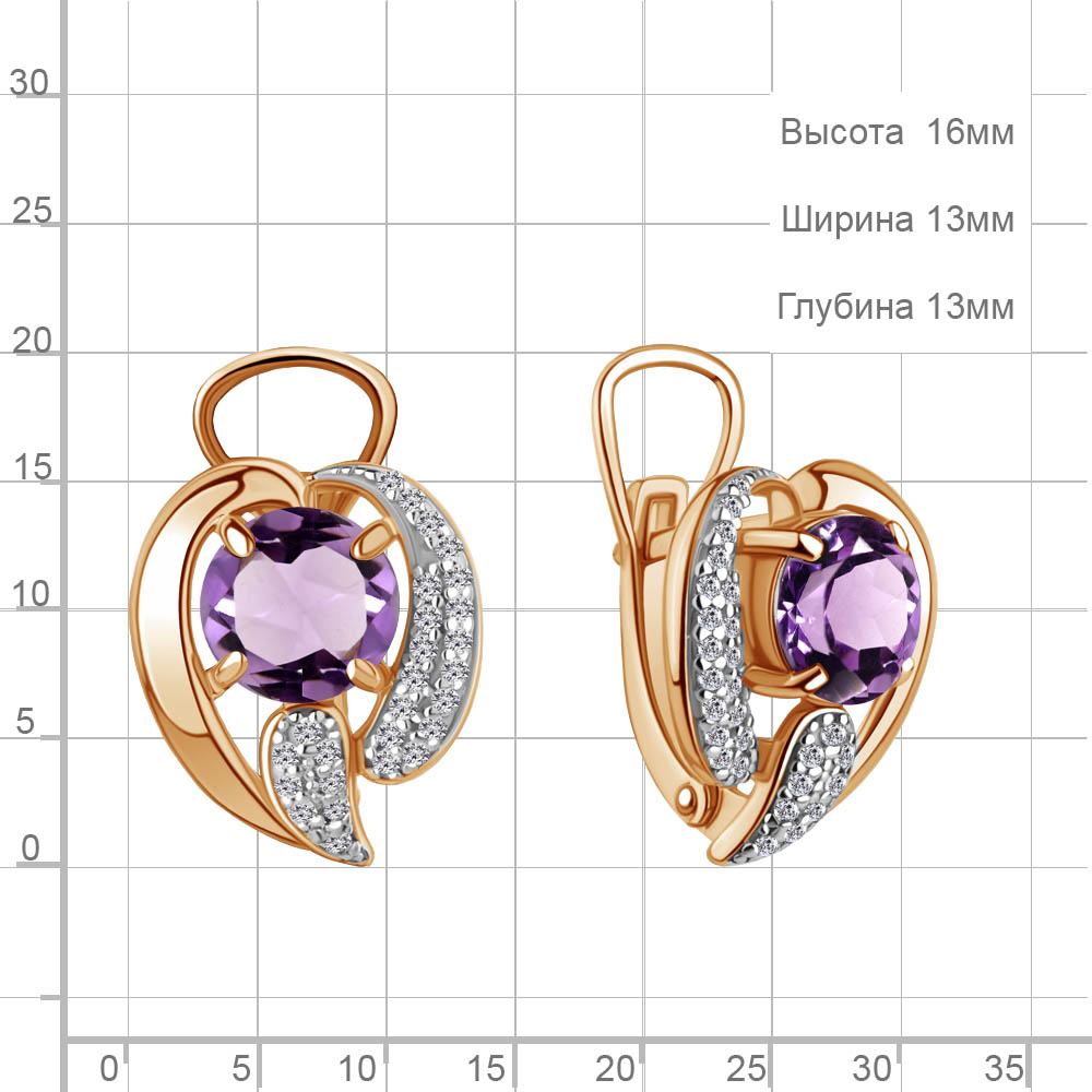 4487404А Серьги из Серебра с аметистами, фианитами