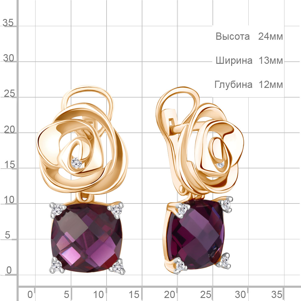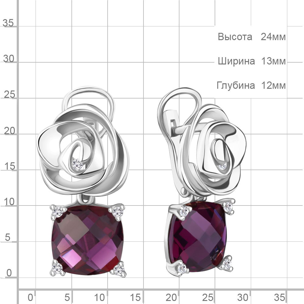4493584 Серьги из Серебра с наноаметистами иск., фианитами