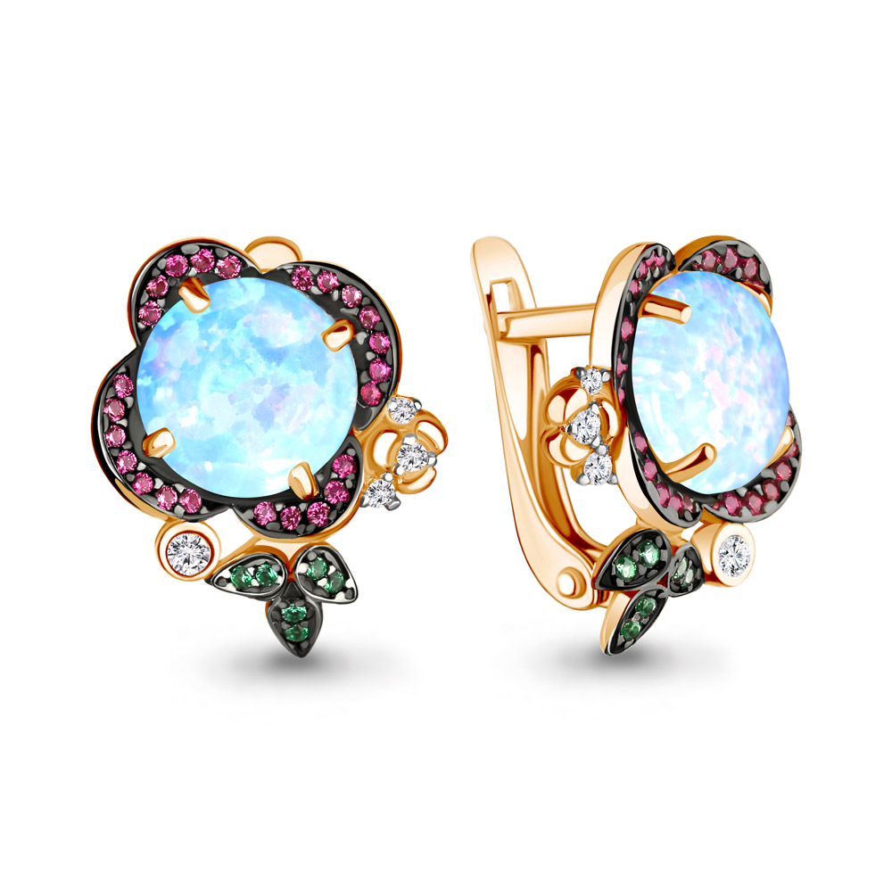 4498797ВГ Серьги из Серебра с наноизумрудами, нанотурмалинами, опалами иск., фианитами из коллекции "Флёр"
