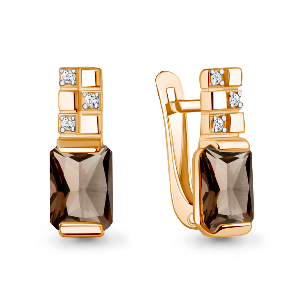 45003301А Серьги из Серебра с кварцами дымчатыми, фианитами