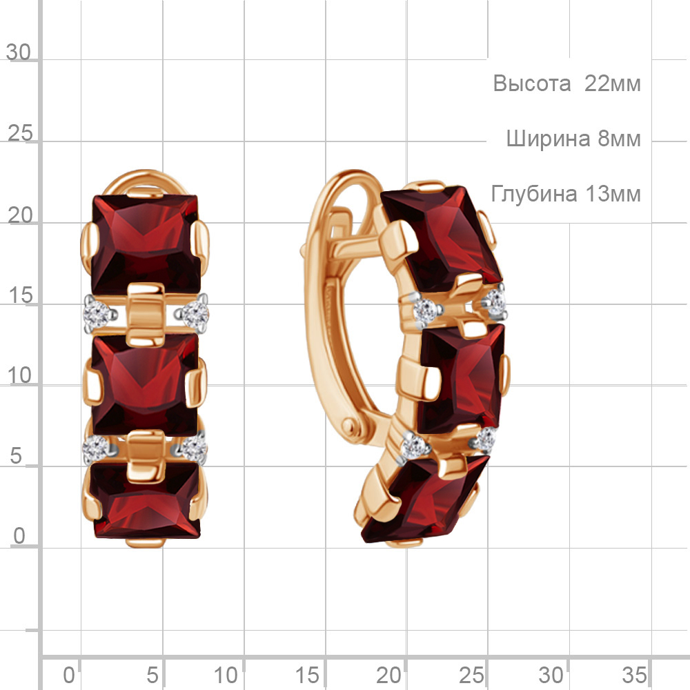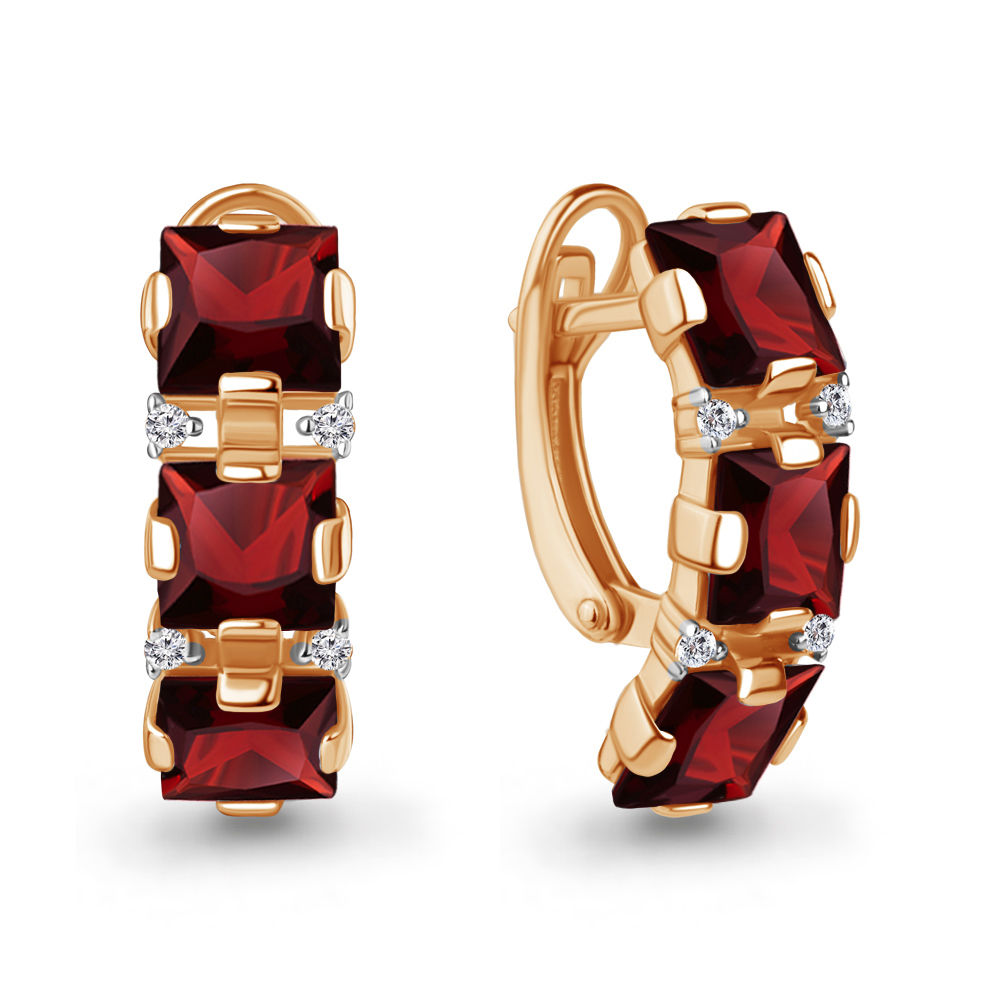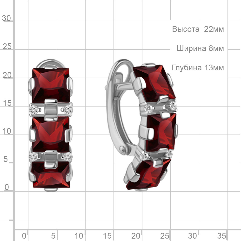 45004503А Серьги из Серебра с гранатами, фианитами