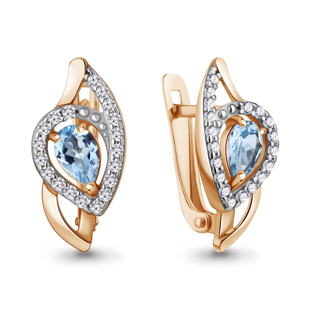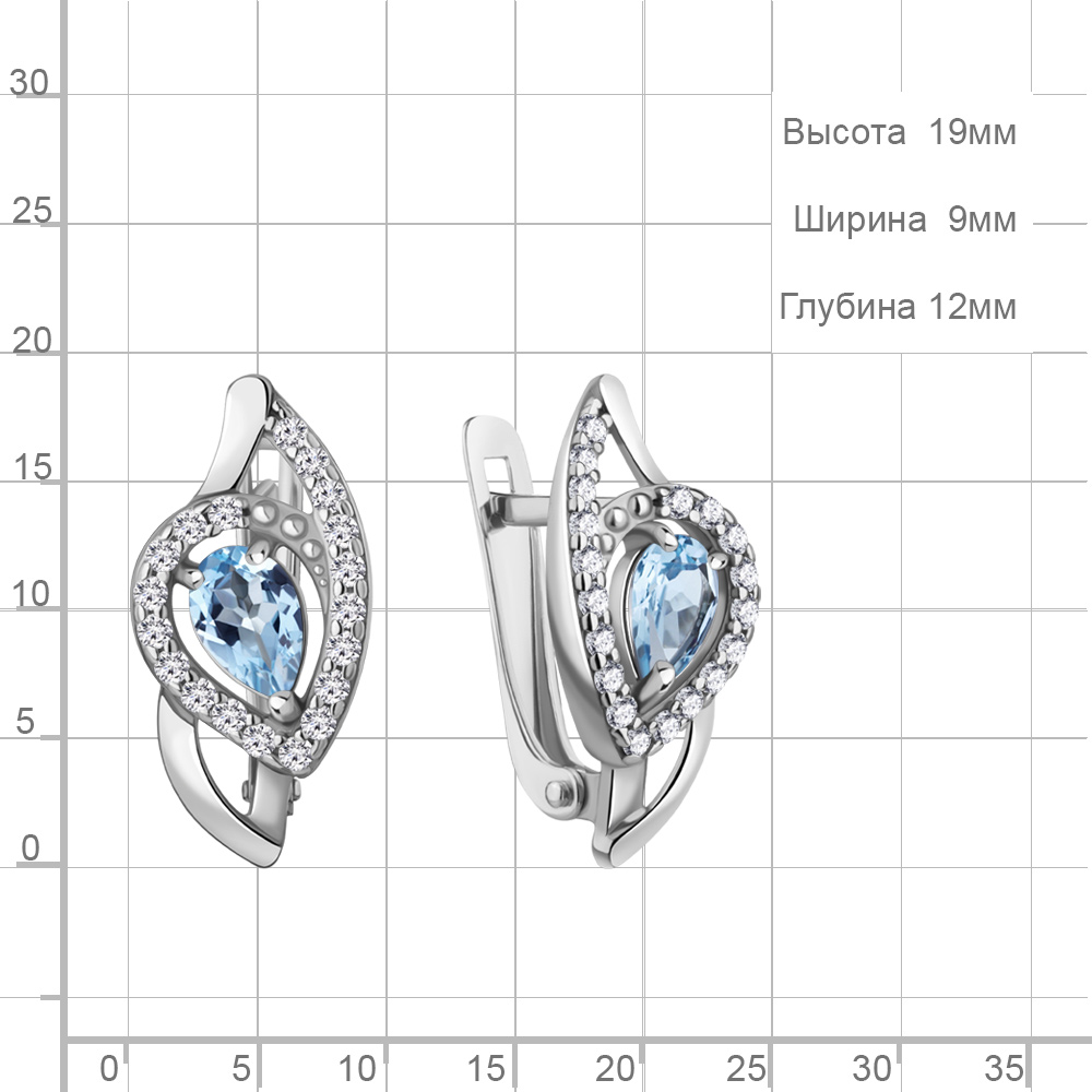 45008805А Серьги из Серебра с топазами свисс блю, фианитами
