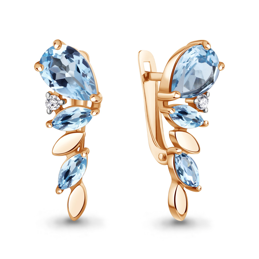 45009005А Серьги из Серебра с топазами свисс блю, фианитами