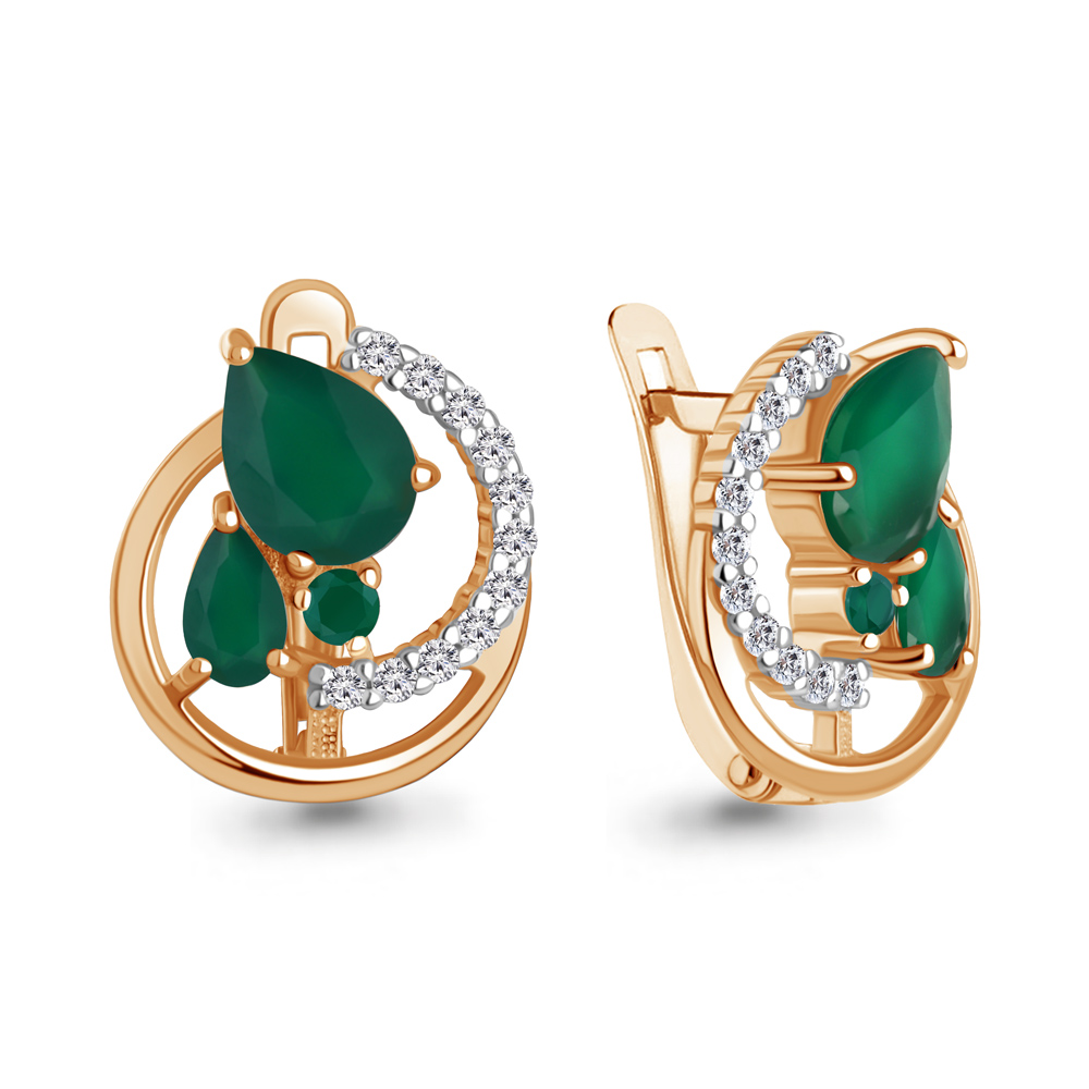 45009809А Серьги из Серебра с агатами, фианитами