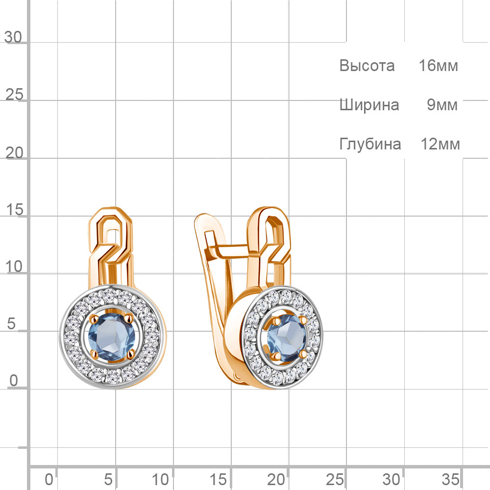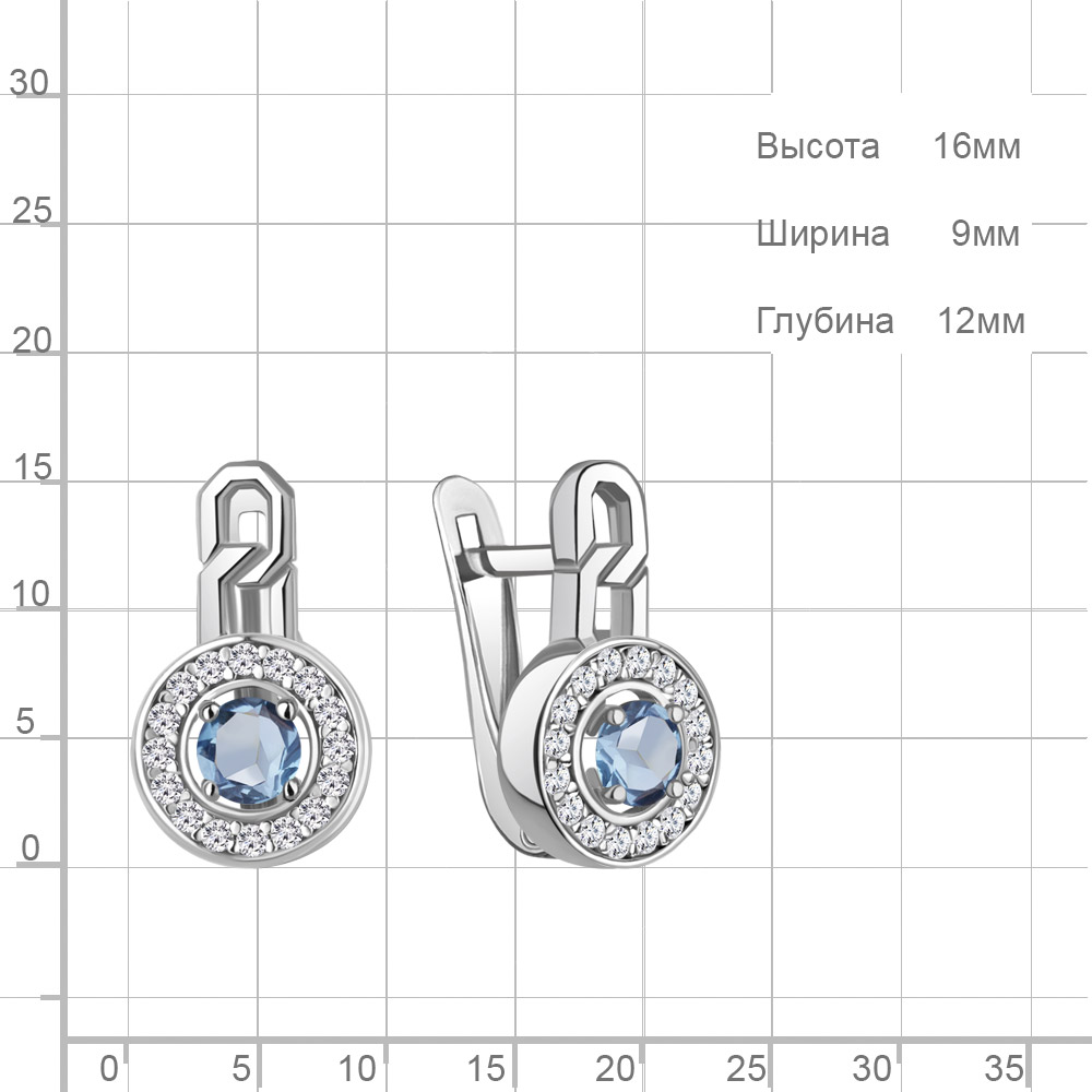 45011805А Серьги из Серебра с топазами свисс блю, фианитами