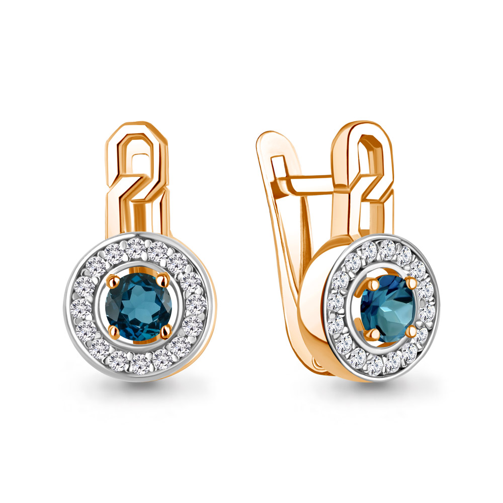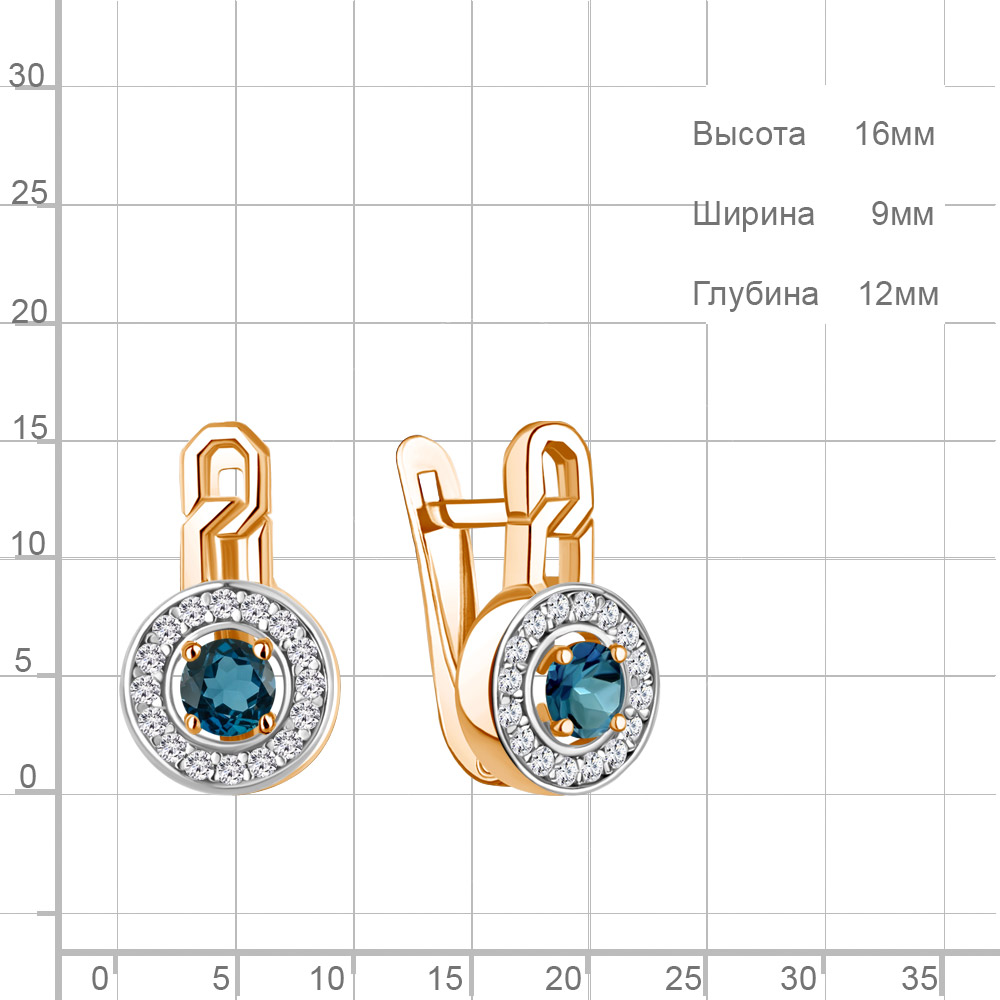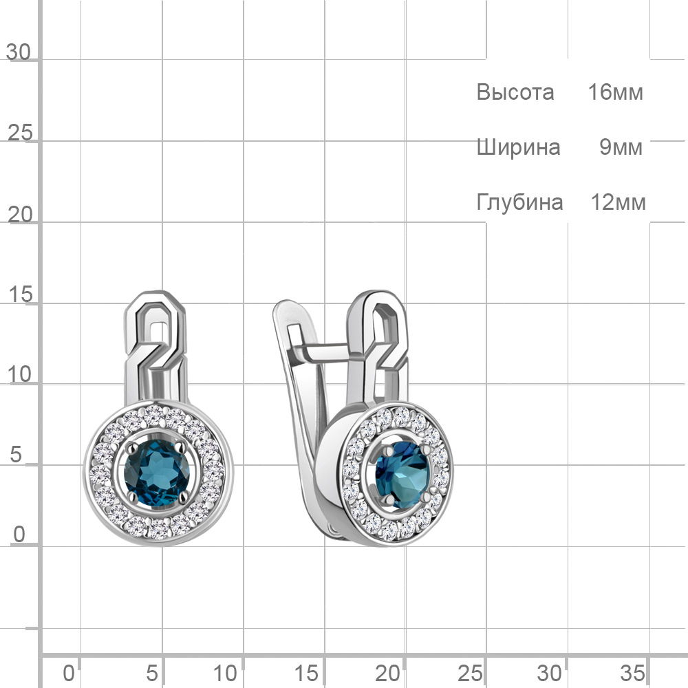 45011808А Серьги из Серебра с топазами лондон блю, фианитами