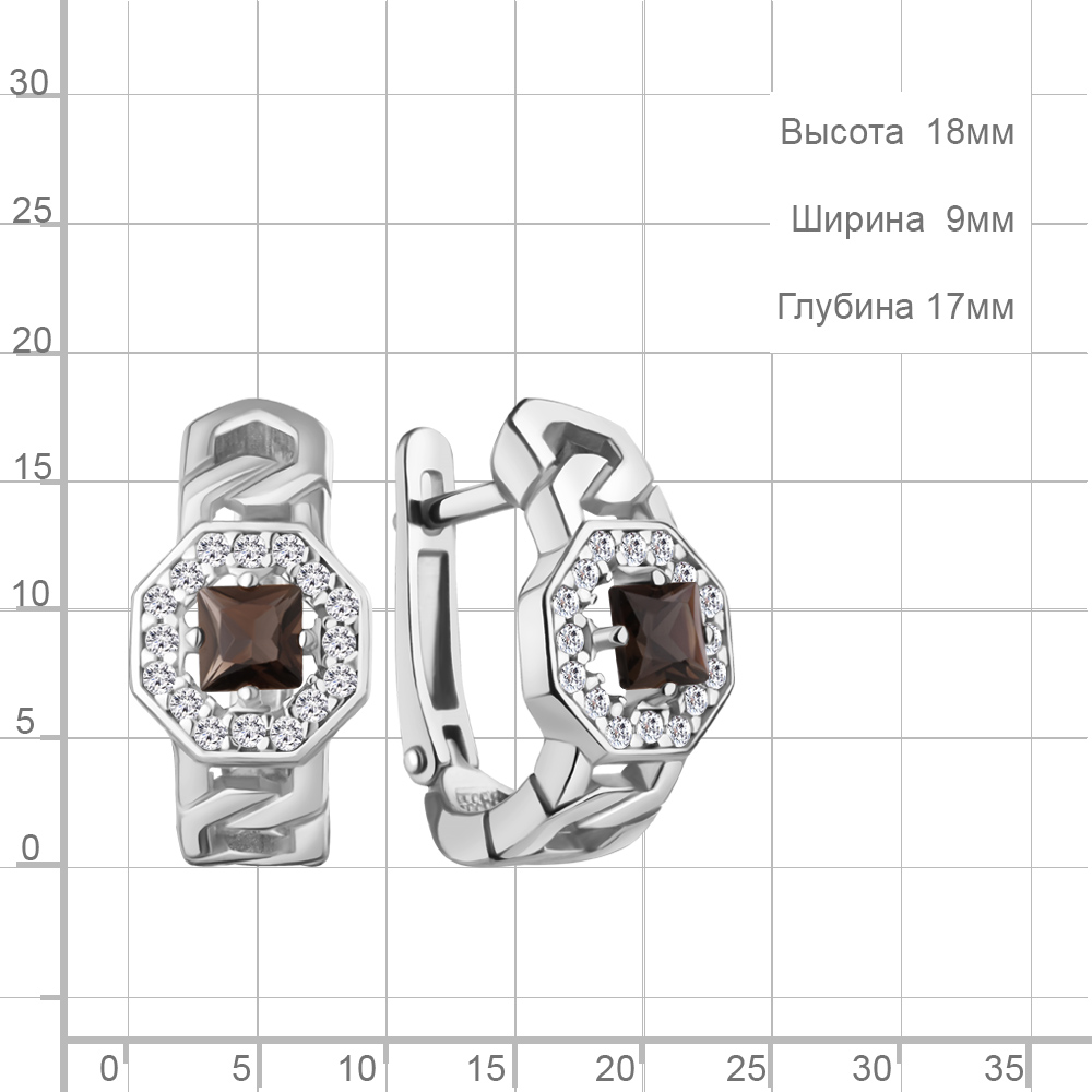 45013301А Серьги из Серебра с кварцами дымчатыми, фианитами