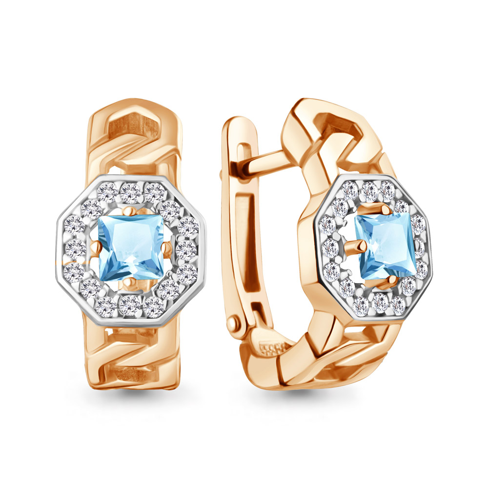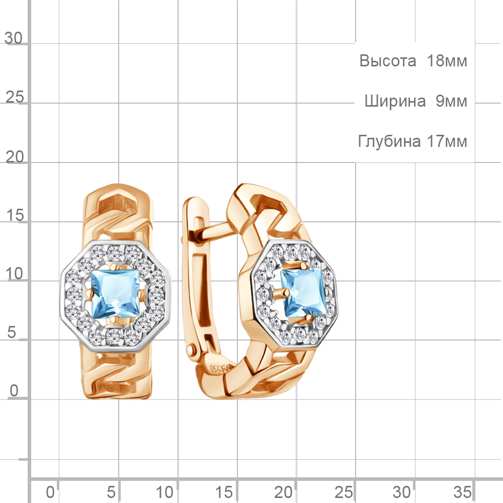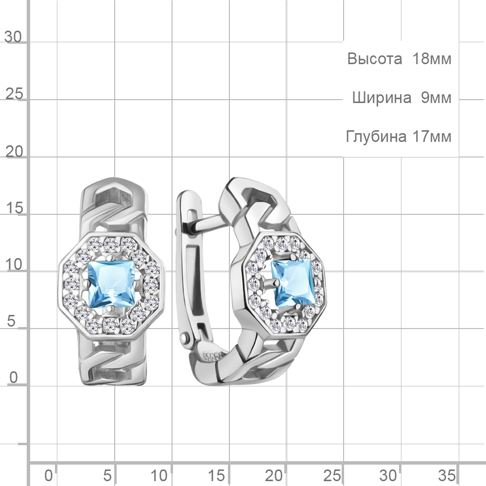 45013302А Серьги из Серебра с топазами скай блю, фианитами