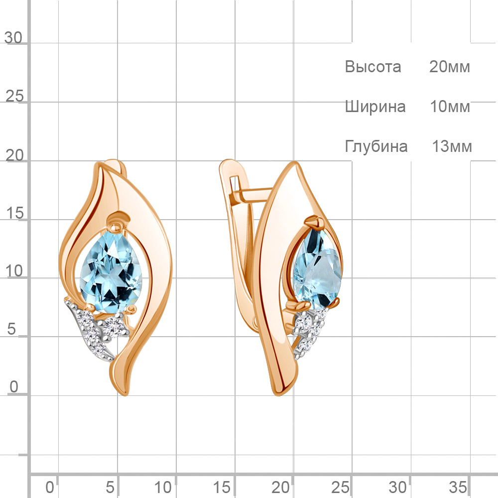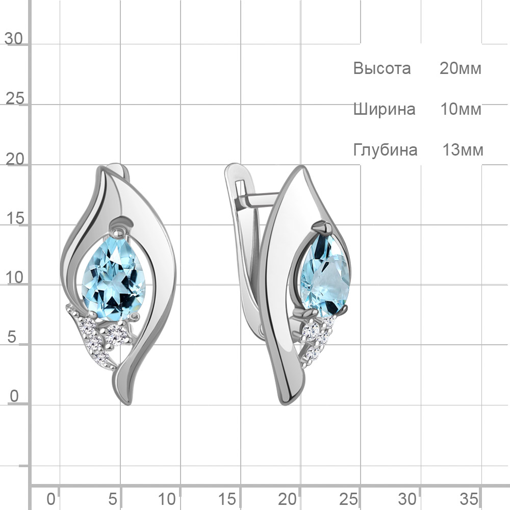 45013402А Серьги из Серебра с топазами скай блю, фианитами