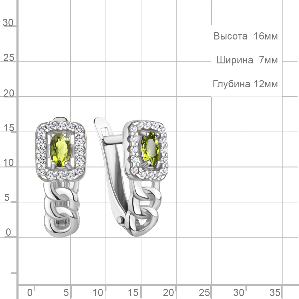 45013607А Серьги из Серебра с фианитами, хризолитами