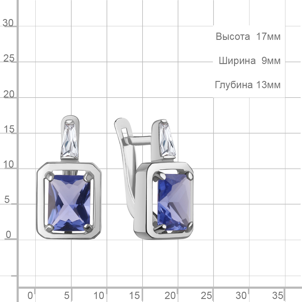 450152603 Серьги из Серебра с нанотанзанитами иск., фианитами