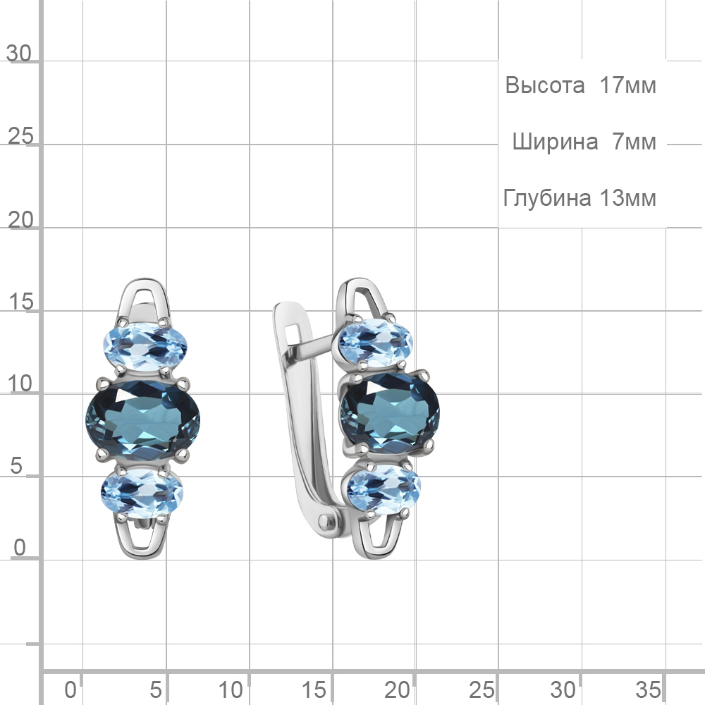 45016362 Серьги из Серебра с топазами лондон блю, топазами свисс блю