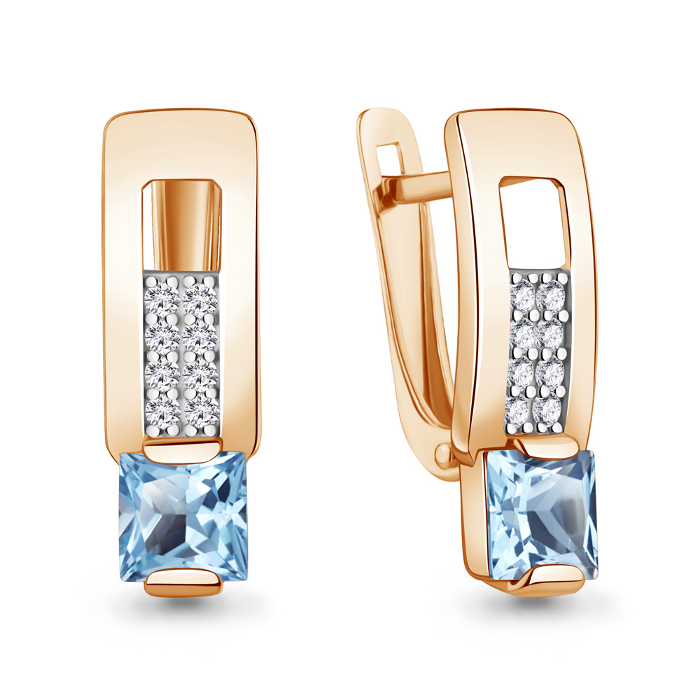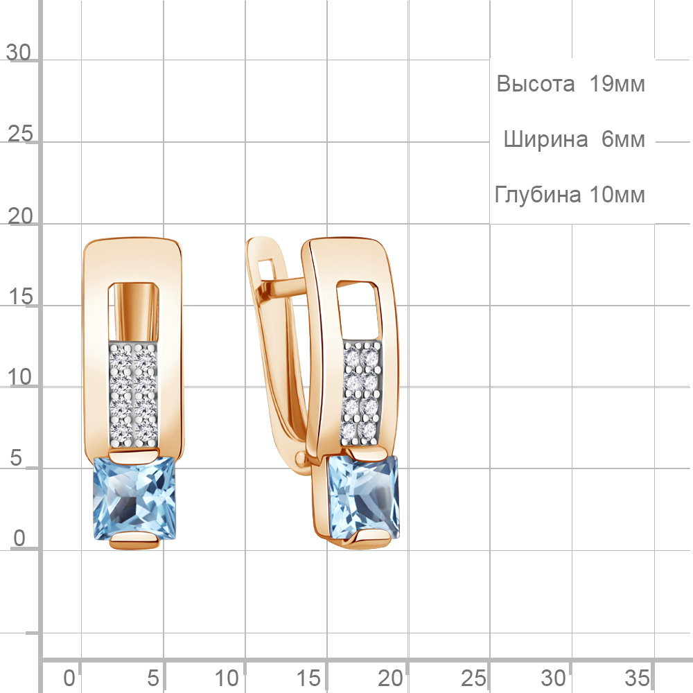 45017505А Серьги из Серебра с топазами свисс блю, фианитами