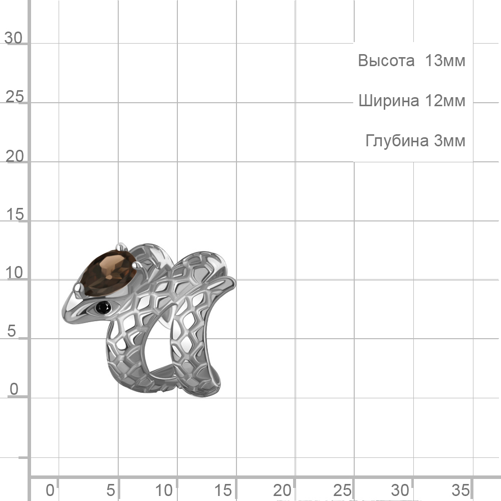 45017801Ч Серьга из Серебра с кварцем дымчатым, нанокристаллами