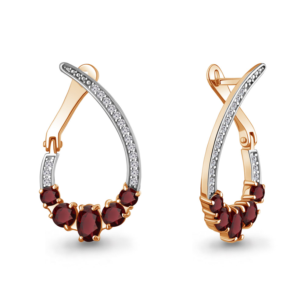 45018303А Серьги из Серебра с гранатами, фианитами