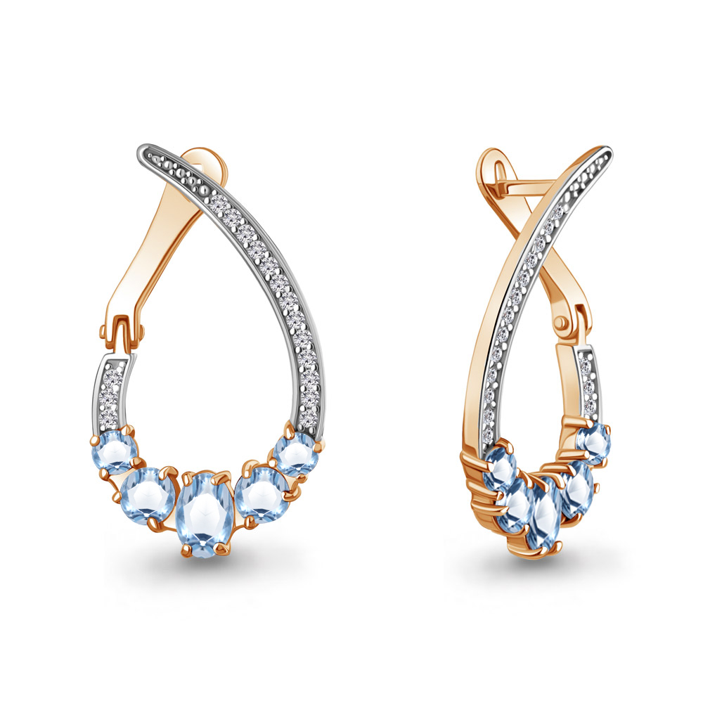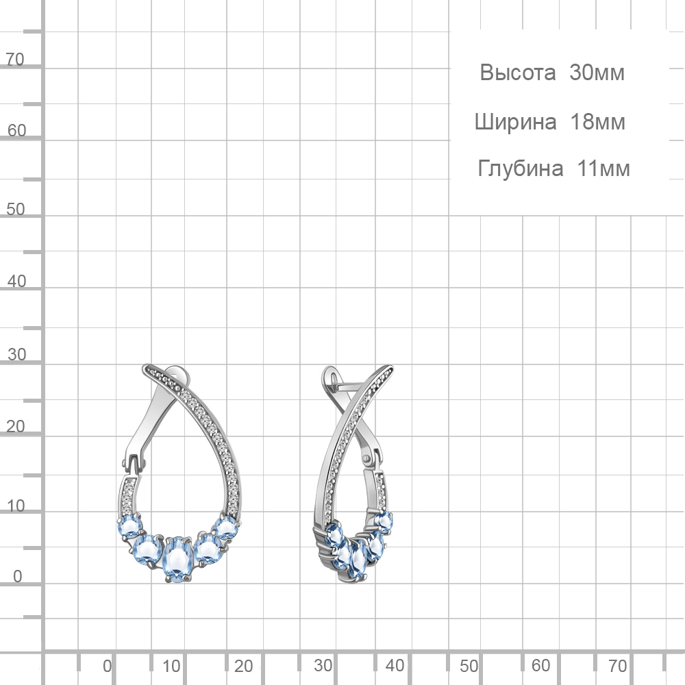45018305А Серьги из Серебра с топазами свисс блю, фианитами