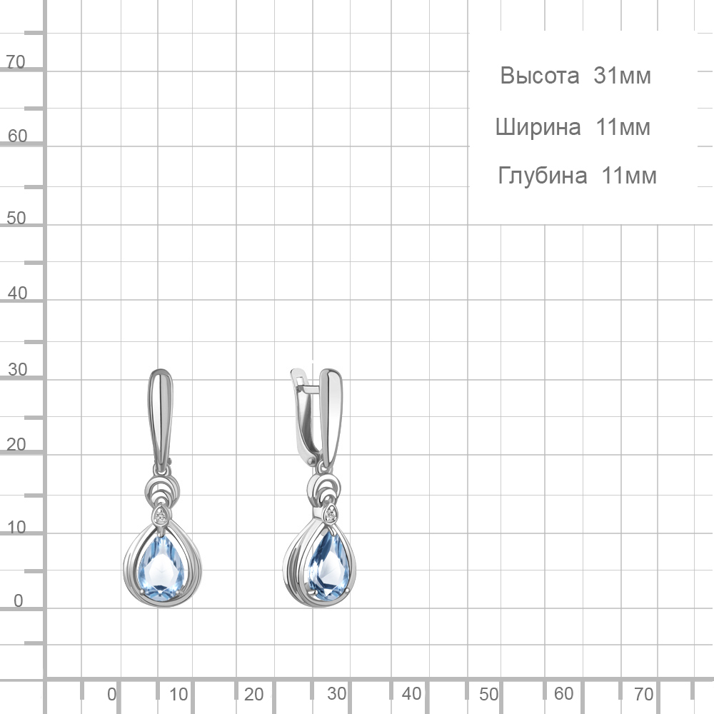 45019405А Серьги из Серебра с топазами свисс блю, фианитами