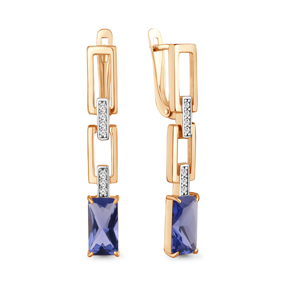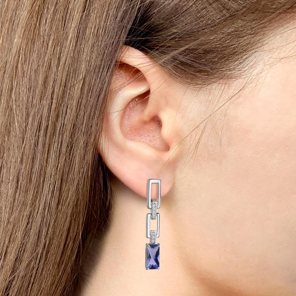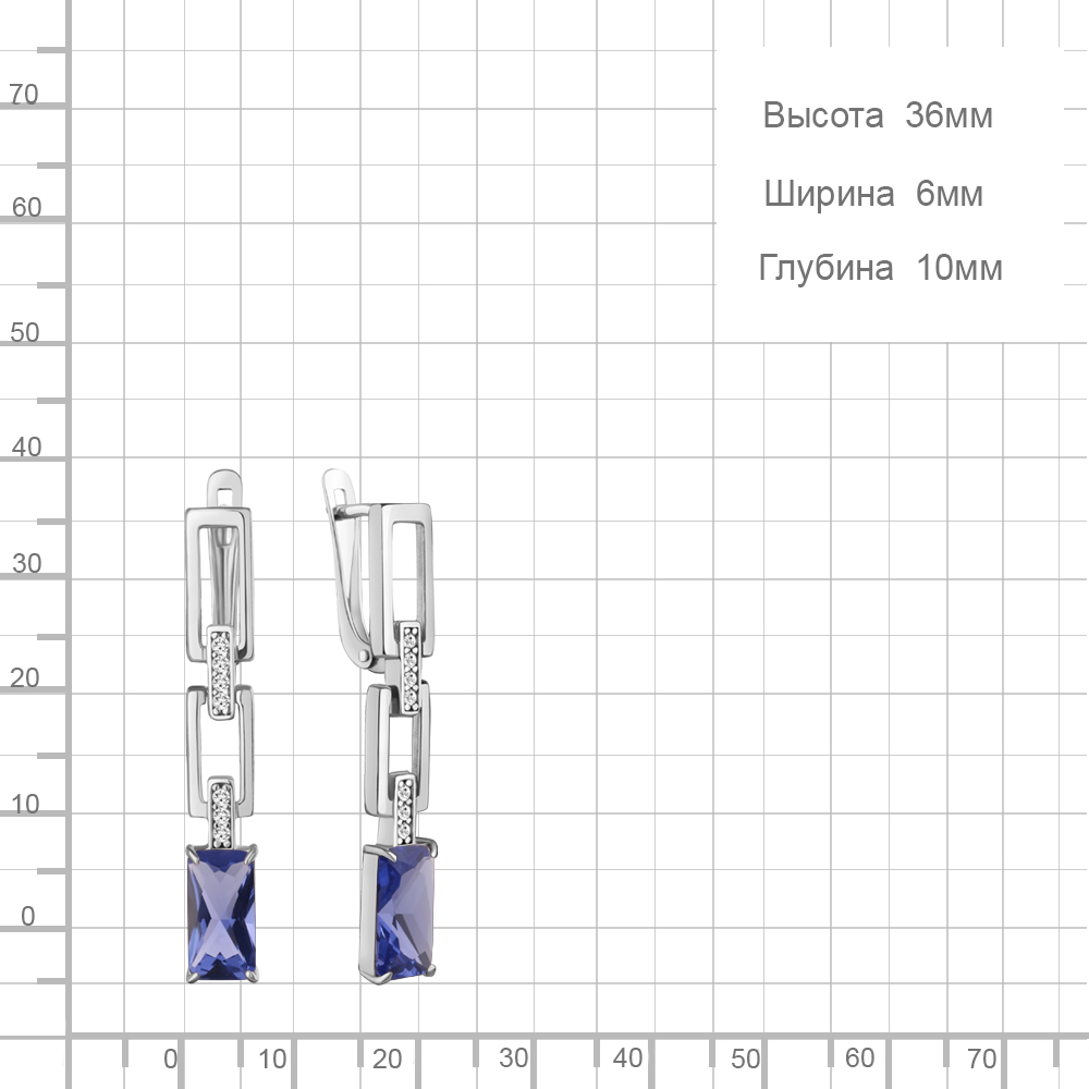 450261603А Серьги из Серебра с нанотанзанитами иск., фианитами