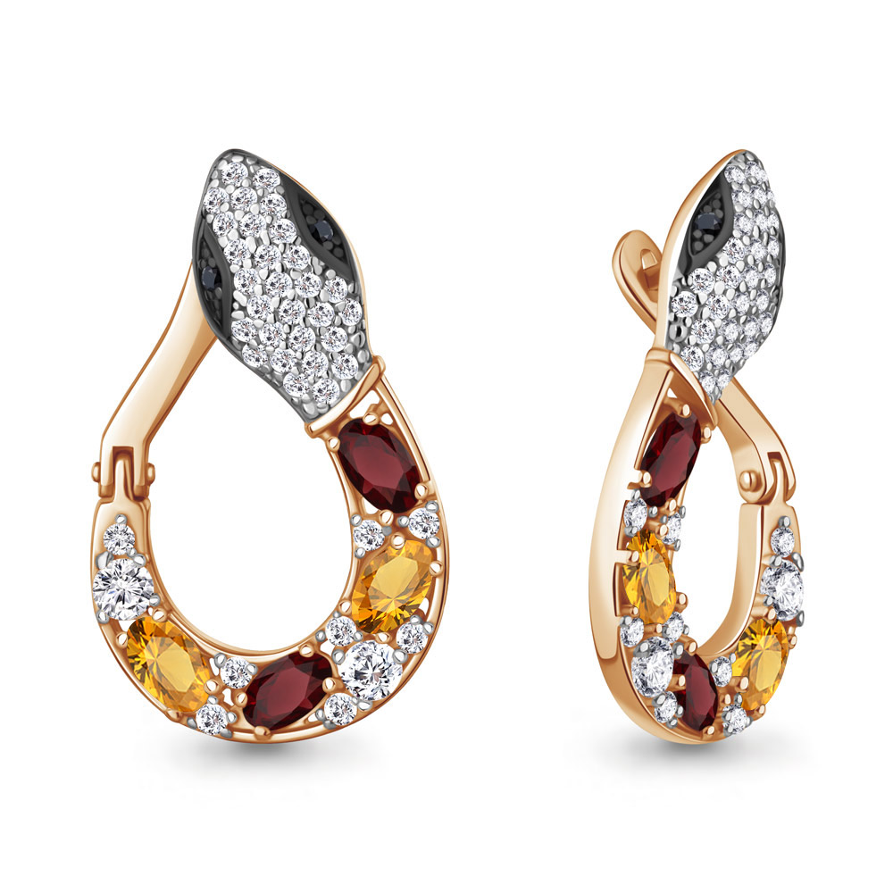 45026434АЧ Серьги из Серебра с гранатами, нанокристаллами, фианитами, цитринами