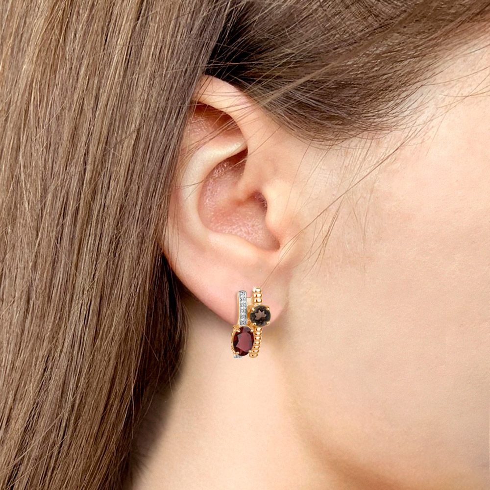 45028636А Серьги из Серебра с гранатами, кварцами дымчатыми, фианитами