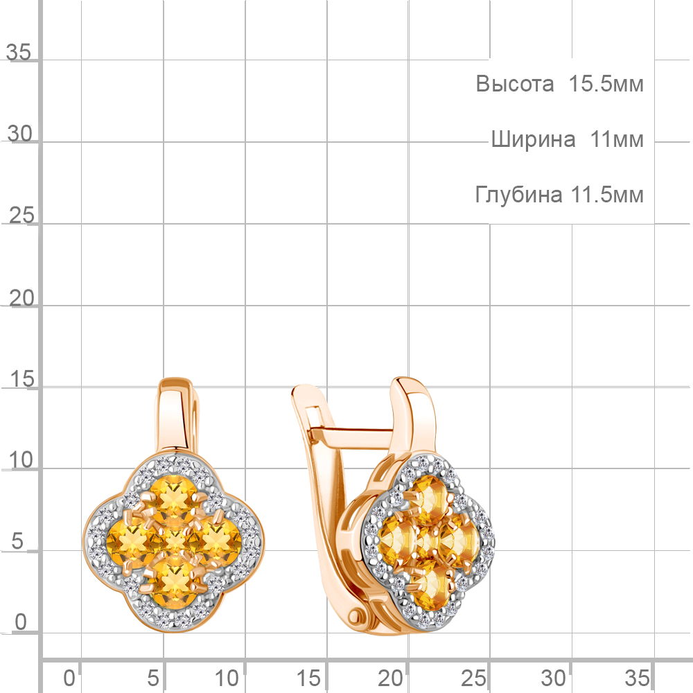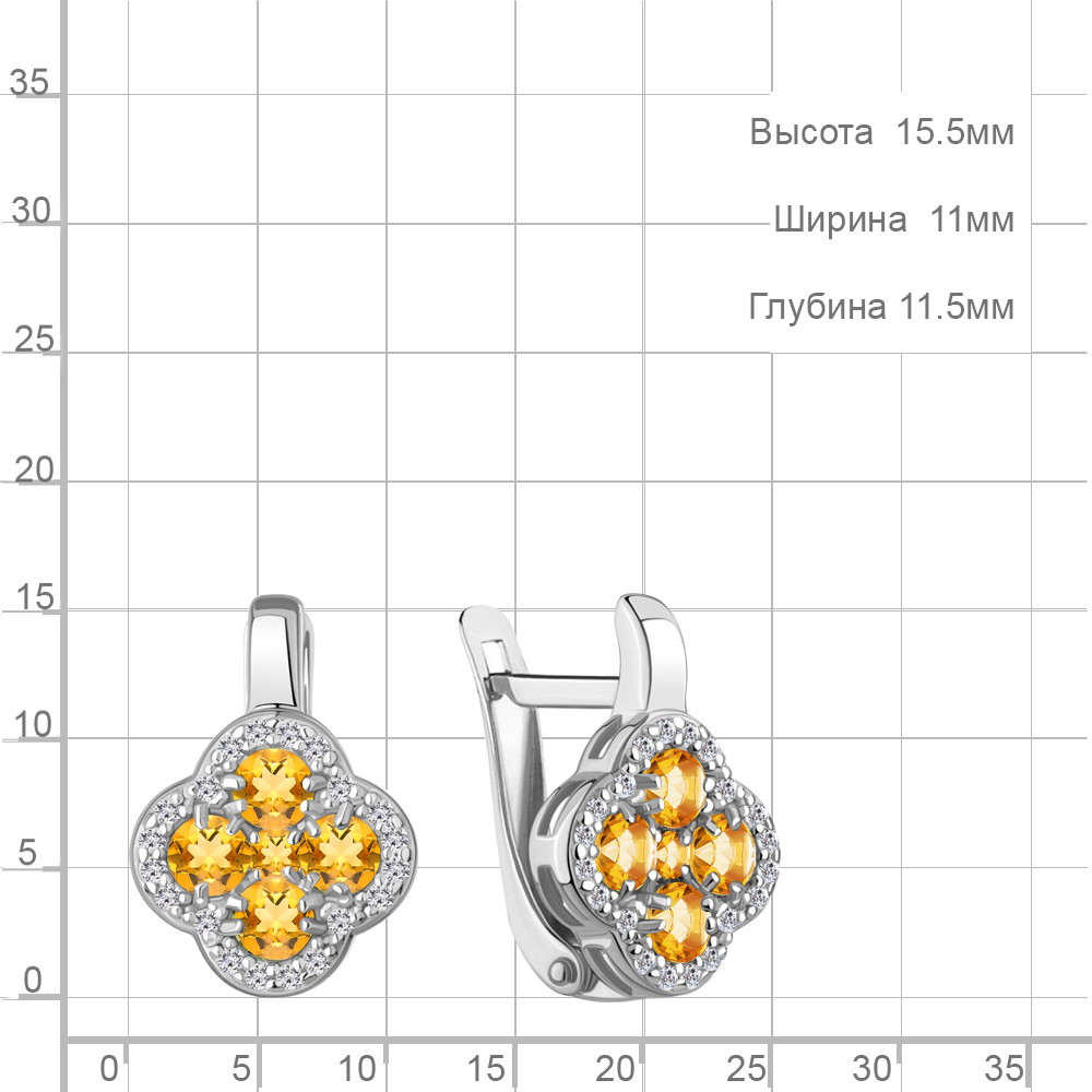 45029306А Серьги из Серебра с фианитами, цитринами
