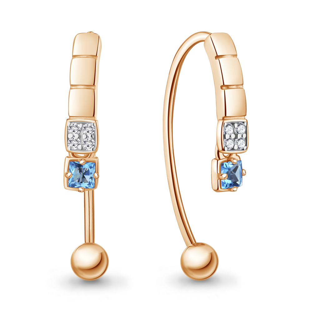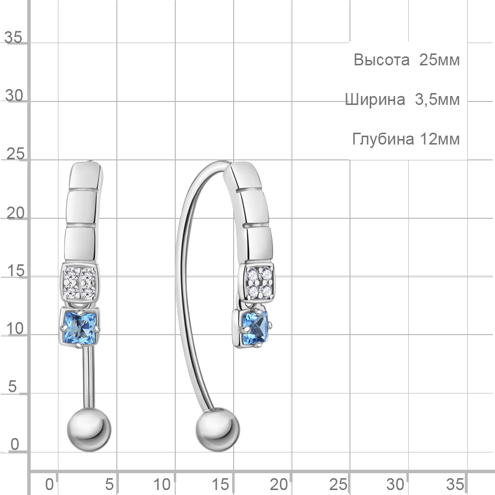 45029905А Серьги из Серебра с топазами свисс блю, фианитами