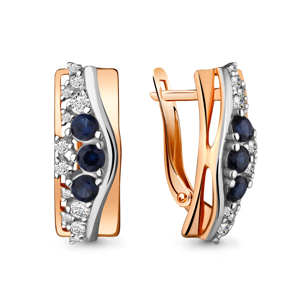 45892Б Серьги из Серебра с наносапфирами, фианитами из коллекции "Клеопатра"