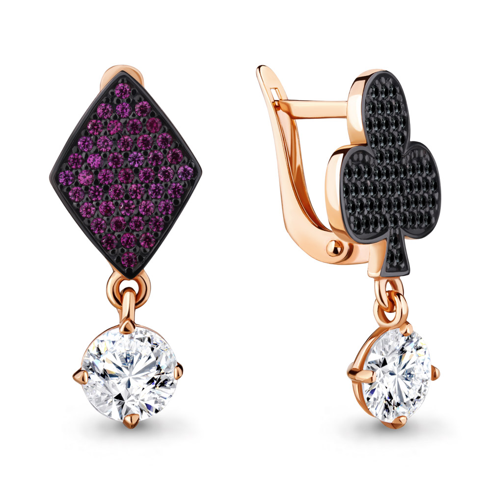 46722ВЧ Серьги из Серебра с корундами иск., нанокристаллами, фианитами