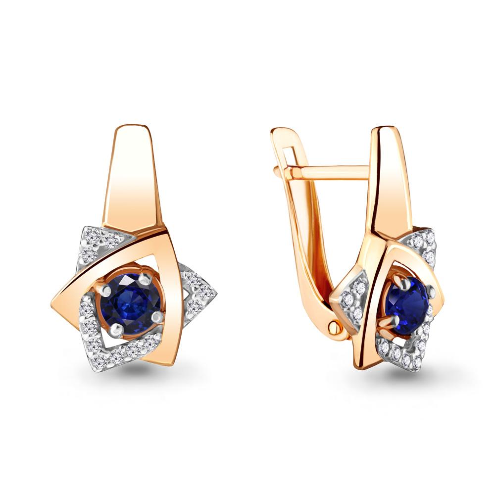 46929АБ Серьги из Серебра с наносапфирами, фианитами из коллекции "Клеопатра"