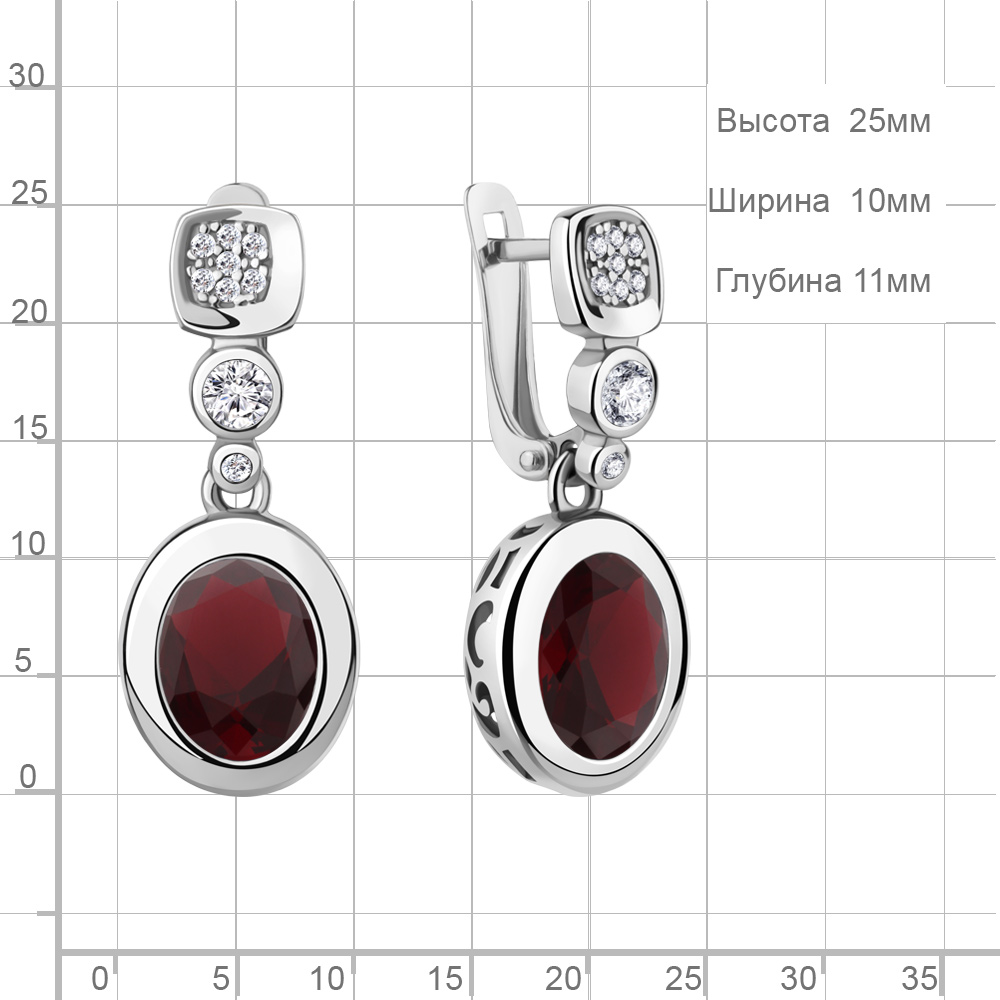4702785А Серьги из Серебра с наногранатами, фианитами