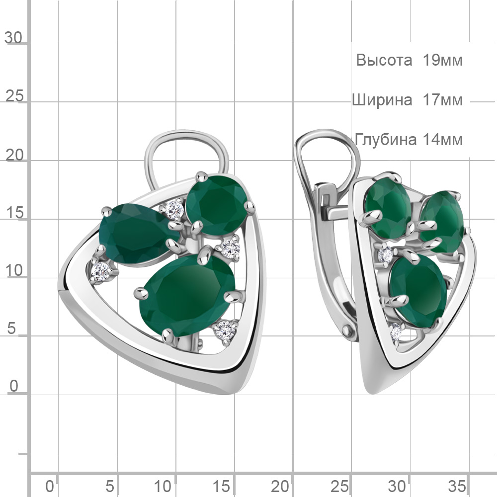 4706709А Серьги из Серебра с агатами, фианитами