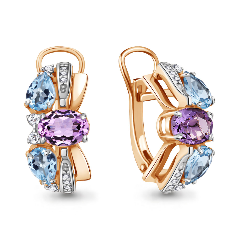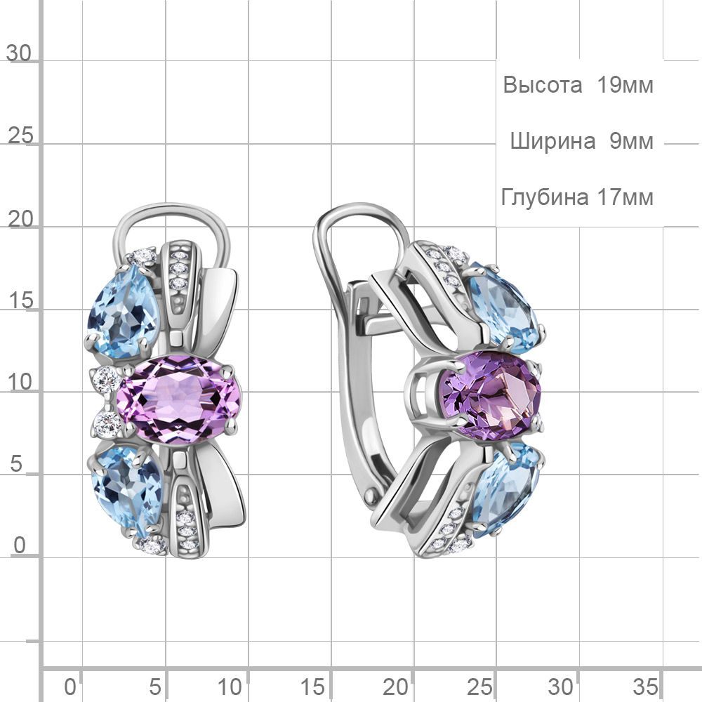 4707830А Серьги из Серебра с аметистами, топазами свисс блю, фианитами