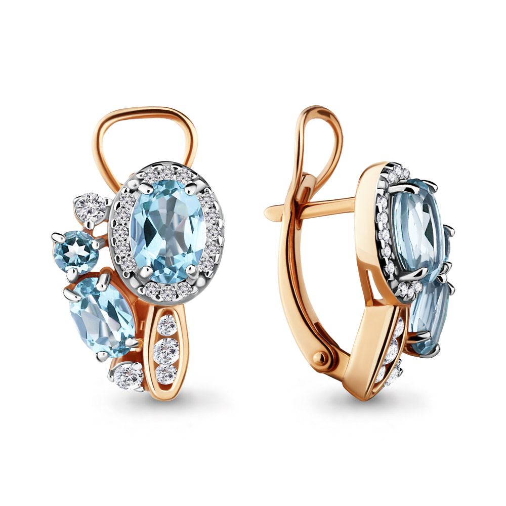 4707902А Серьги из Серебра с топазами скай блю, фианитами
