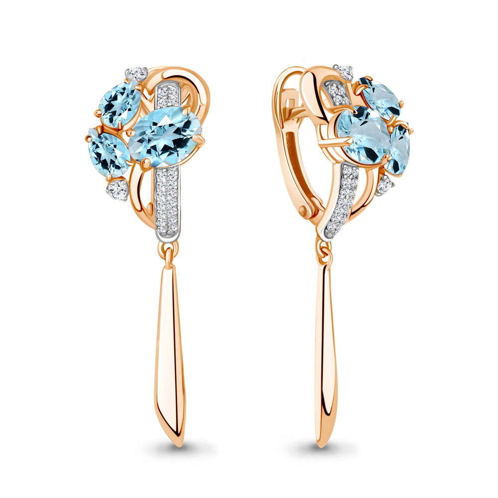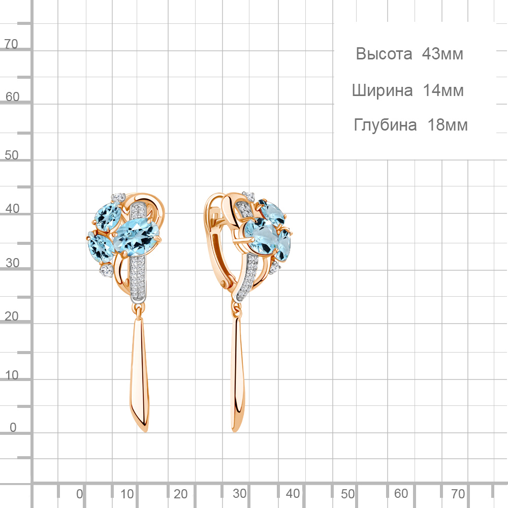 4708802А Серьги из Серебра с топазами скай блю, фианитами