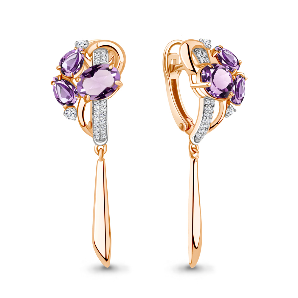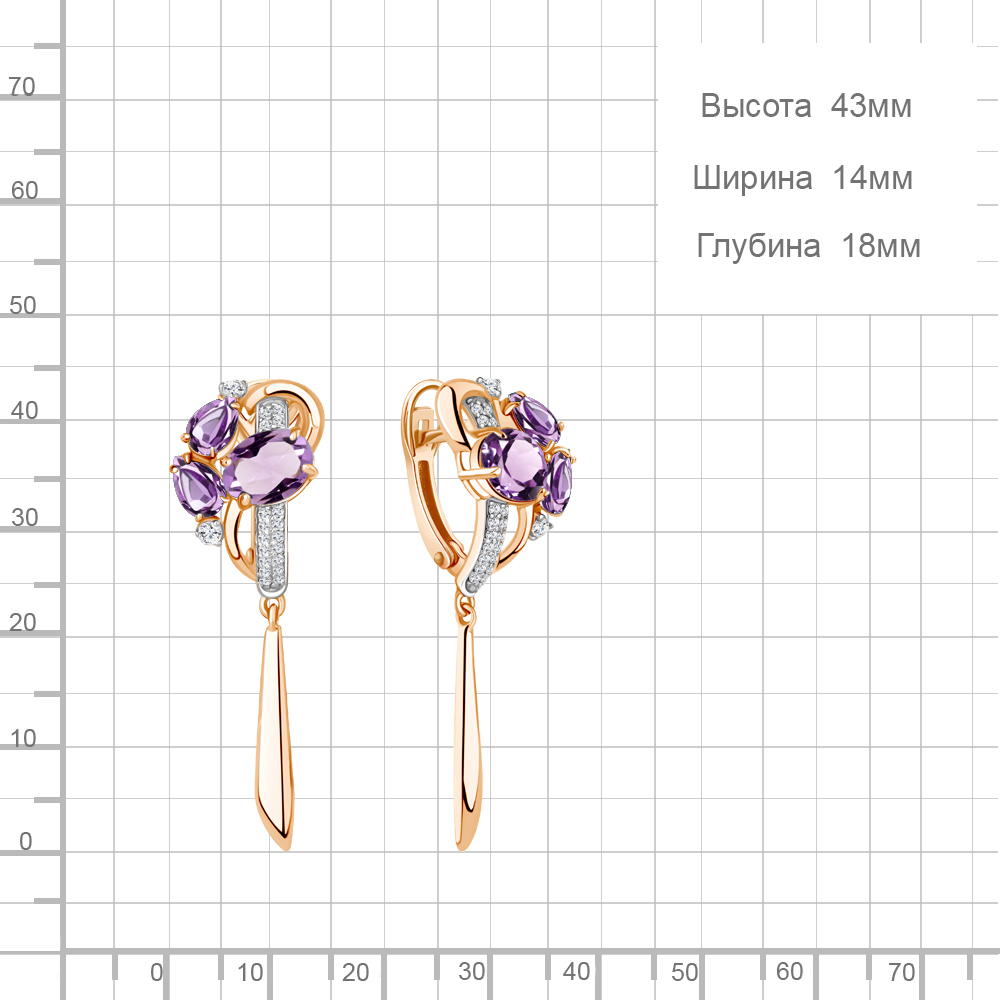 4708804А Серьги из Серебра с аметистами, фианитами