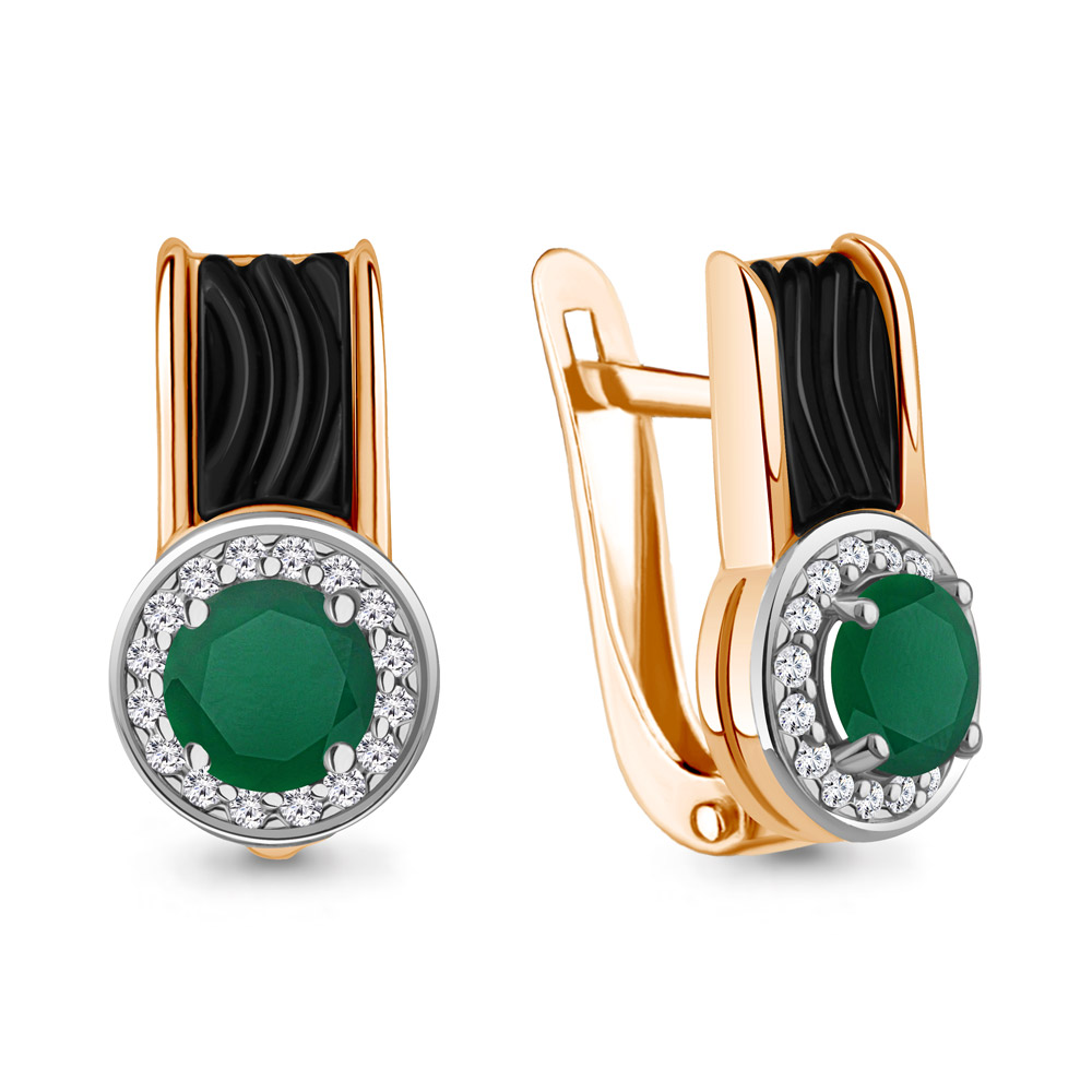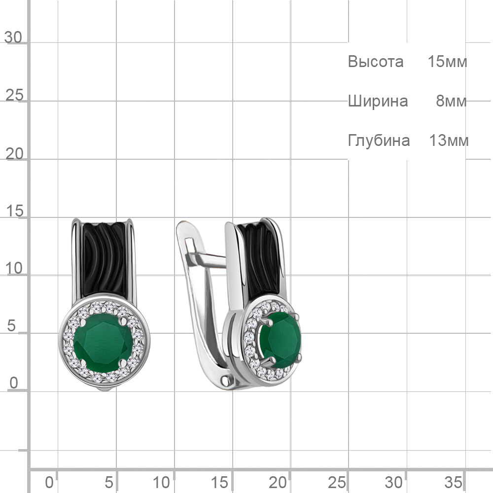 4712609А Серьги из Серебра с агатами, керамическим покрытием, фианитами из коллекции "Neo"