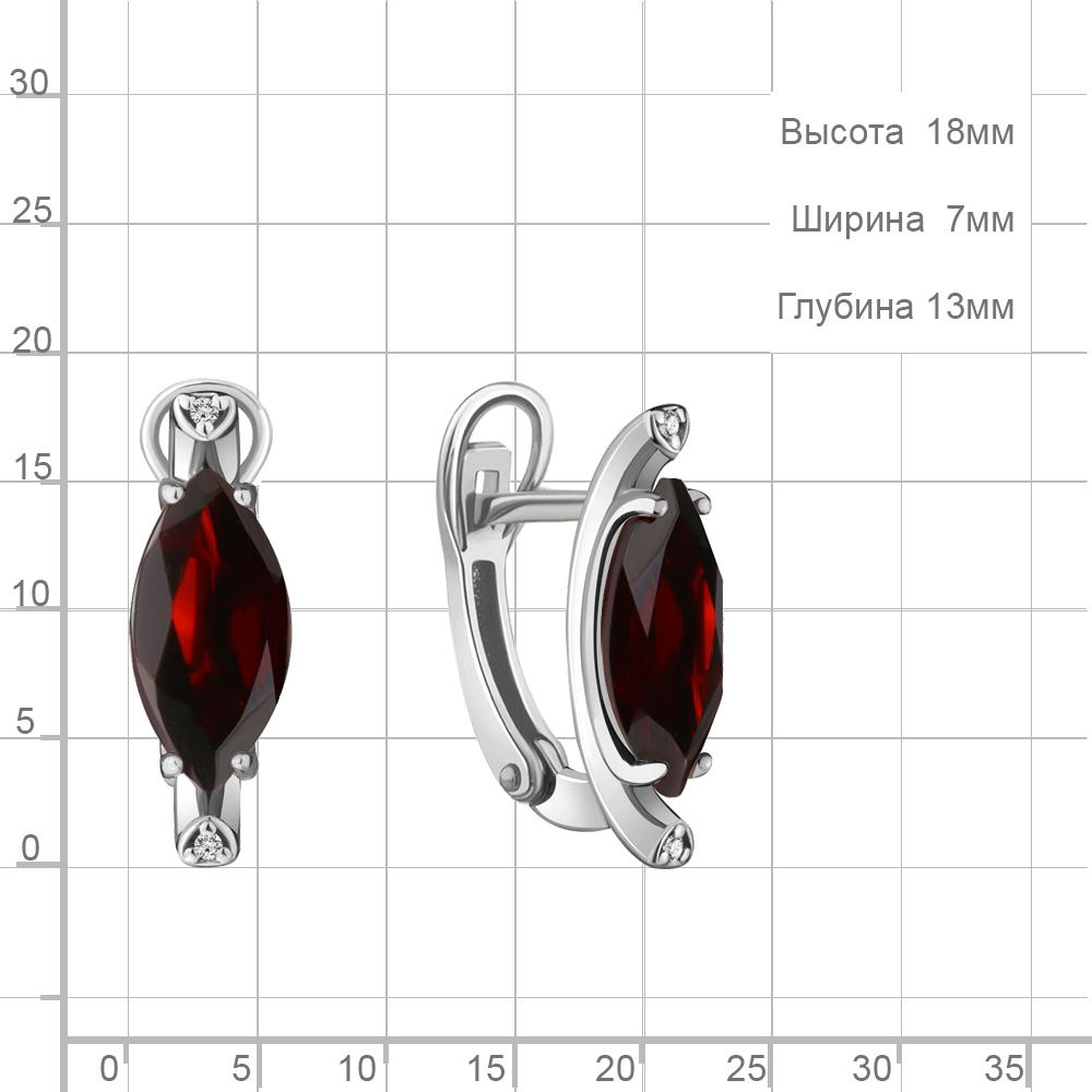 4713003А Серьги из Серебра с гранатами, фианитами