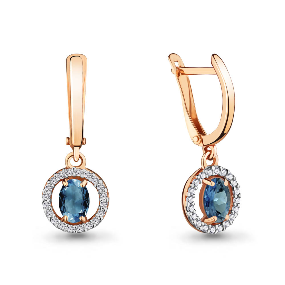 4713208А Серьги из Серебра с топазами лондон блю, фианитами
