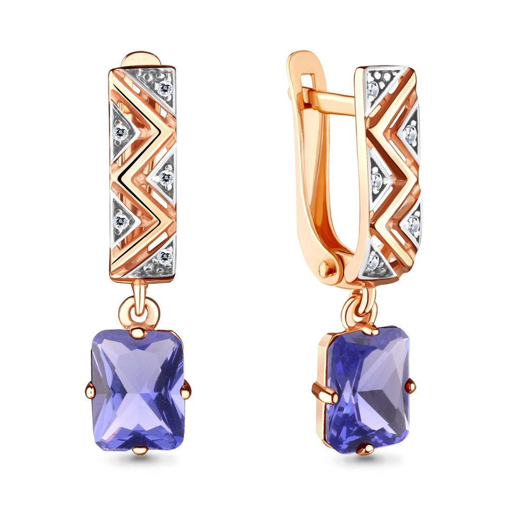 47161603А Серьги из Серебра с нанотанзанитами иск., фианитами