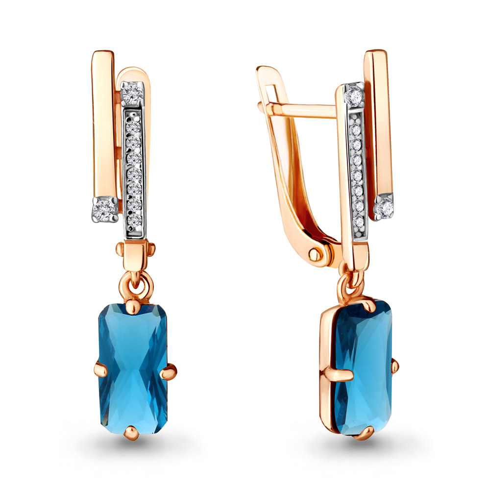 4716693А Серьги из Серебра с нанотопазами лондон, фианитами из коллекции "Каприз"