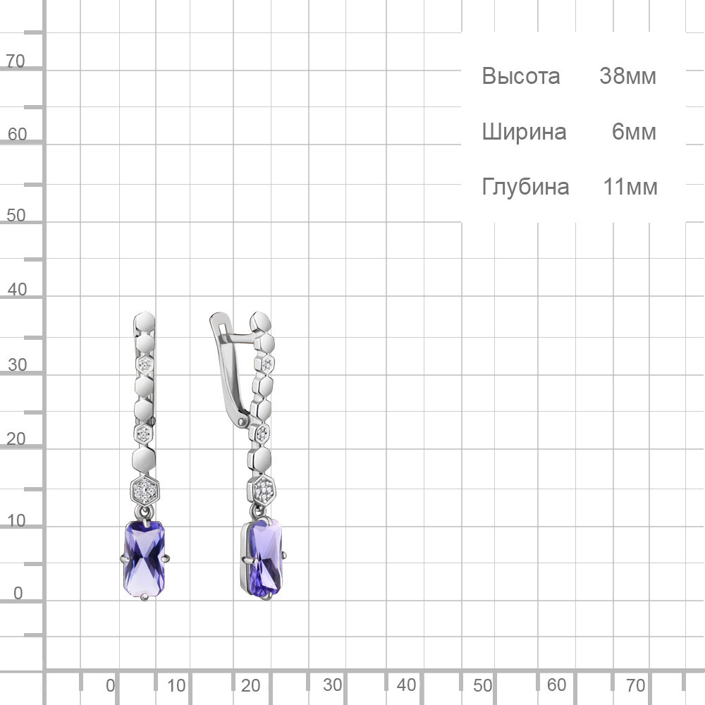 47167603А Серьги из Серебра с нанотанзанитами иск., фианитами из коллекции "Каприз"