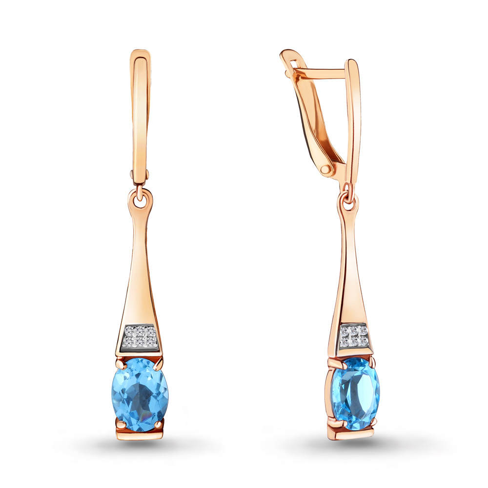 4717105А Серьги из Серебра с топазами свисс блю, фианитами