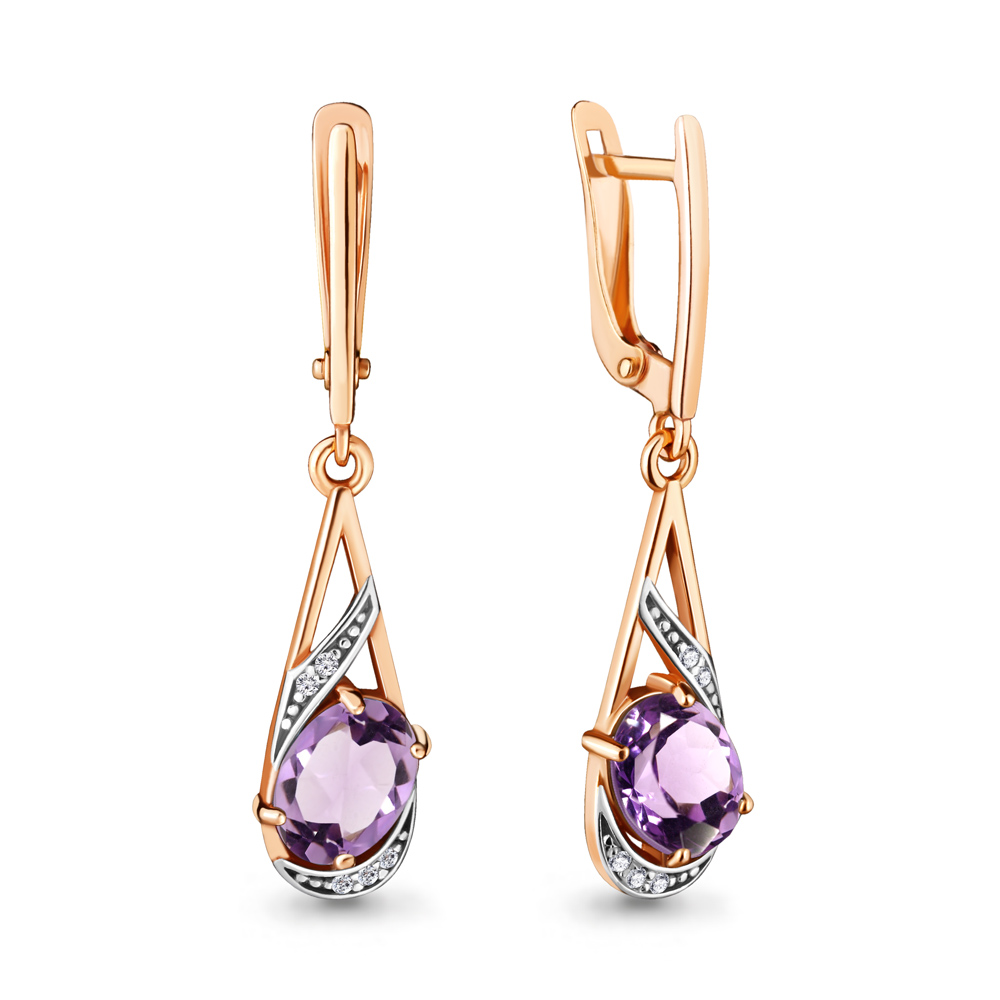 4717404А Серьги из Серебра с аметистами, фианитами