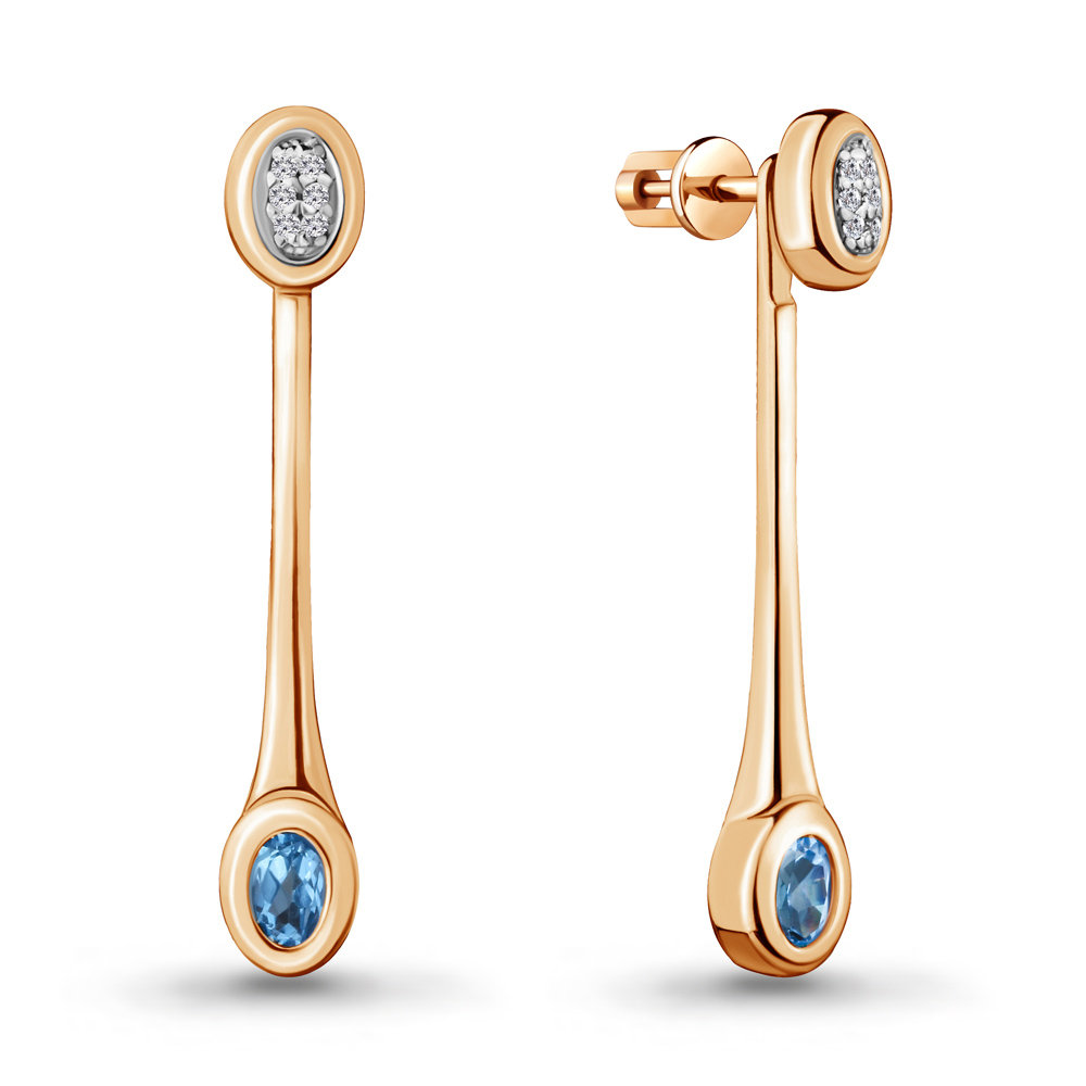 4718905А Серьги из Серебра с топазами свисс блю, фианитами