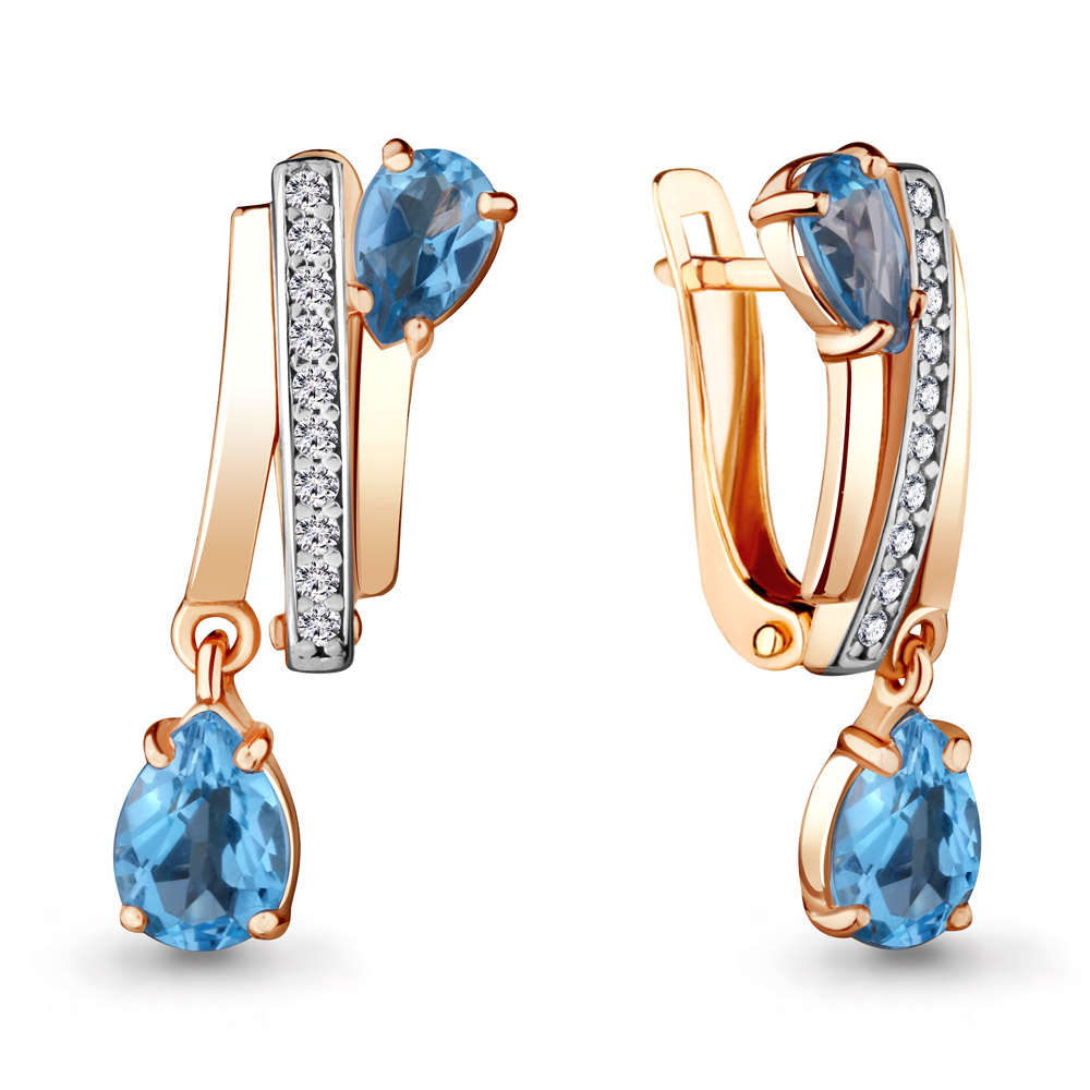 4721205А Серьги из Серебра с топазами свисс блю, фианитами