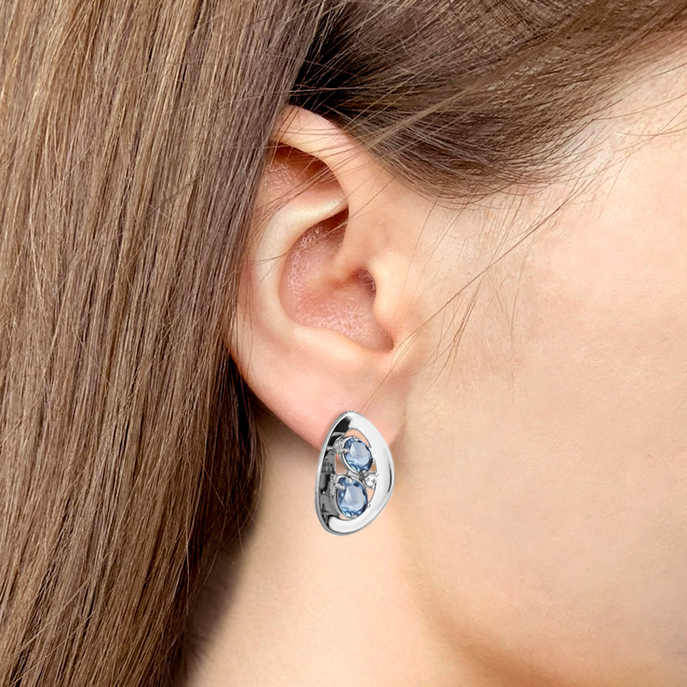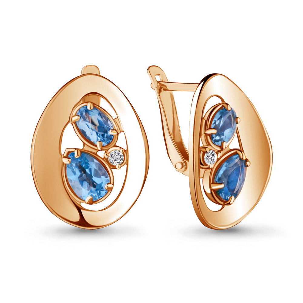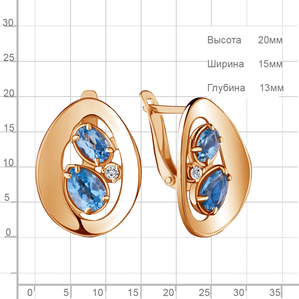 4721705А Серьги из Серебра с топазами свисс блю, фианитами