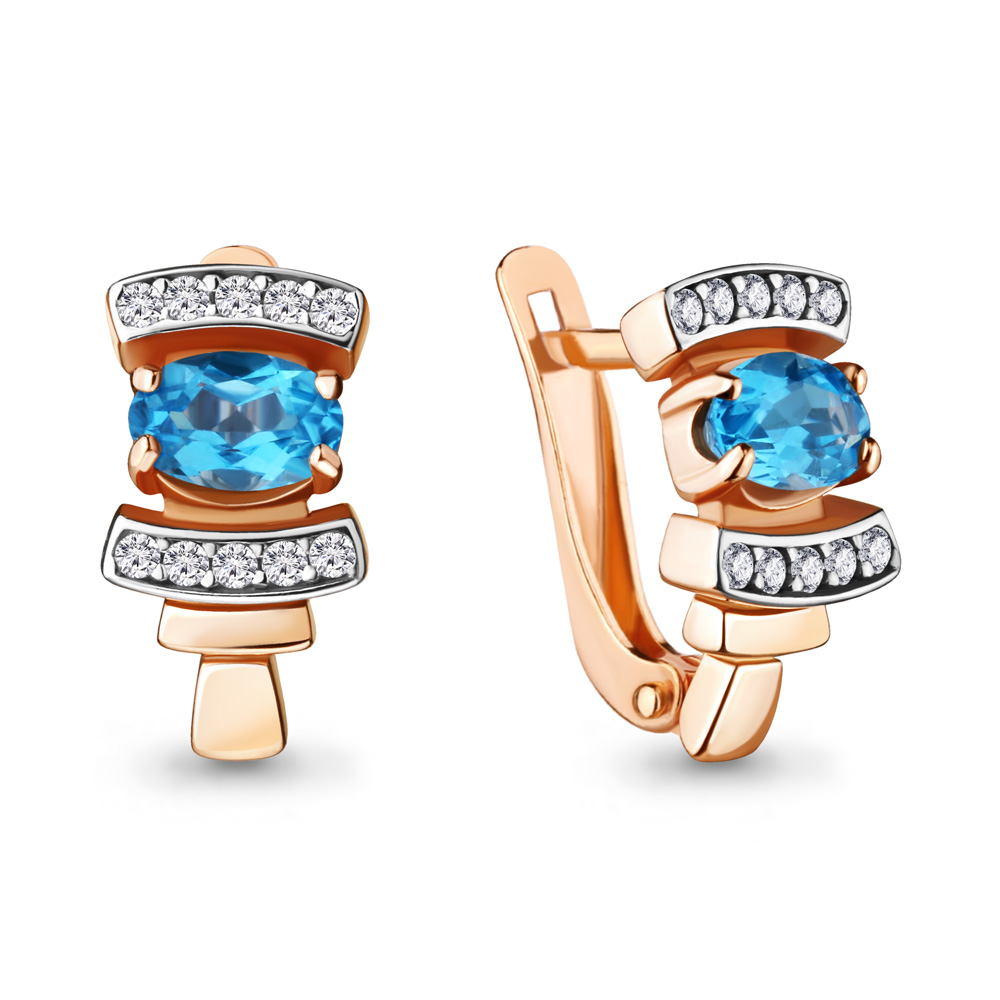 4723205А Серьги из Серебра с топазами свисс блю, фианитами