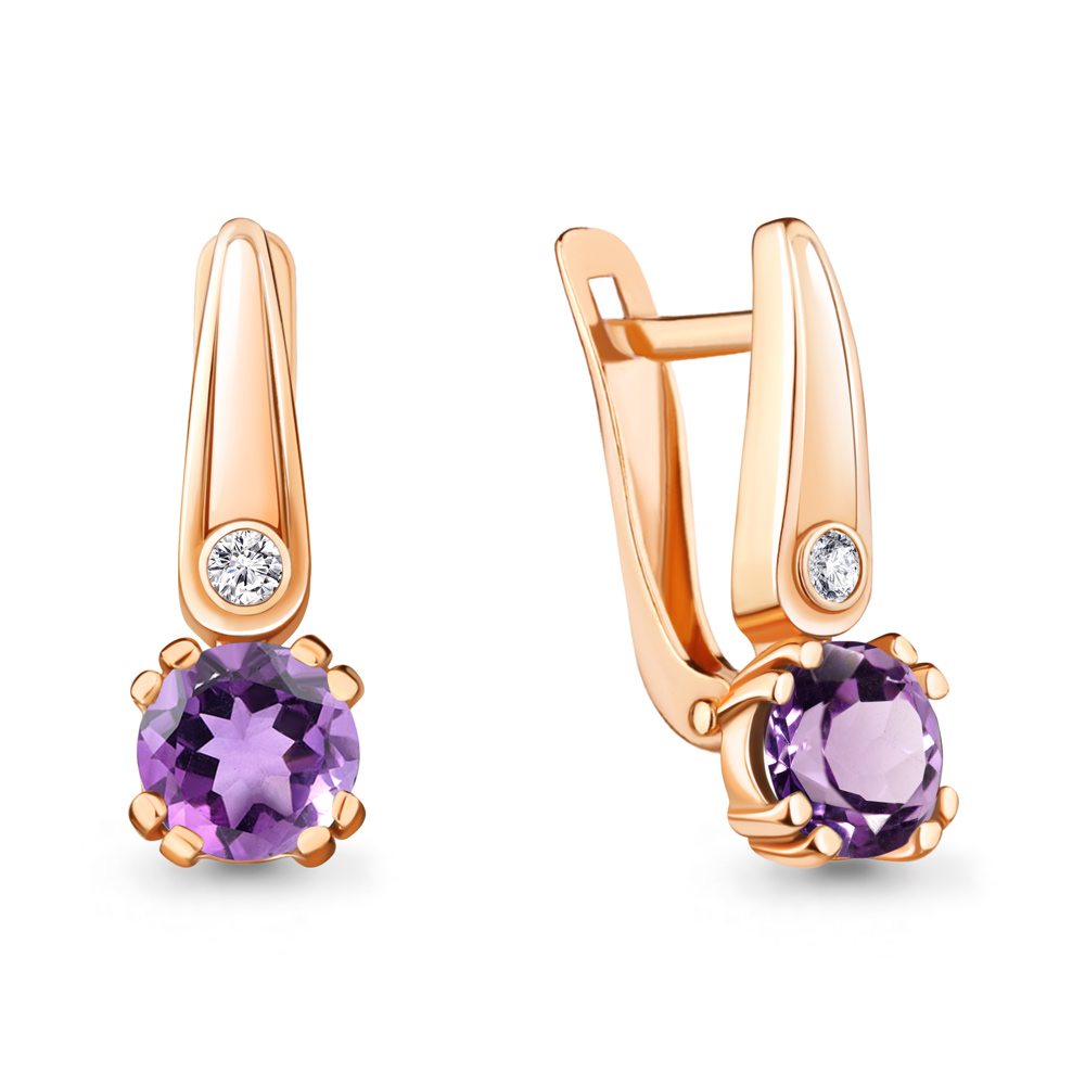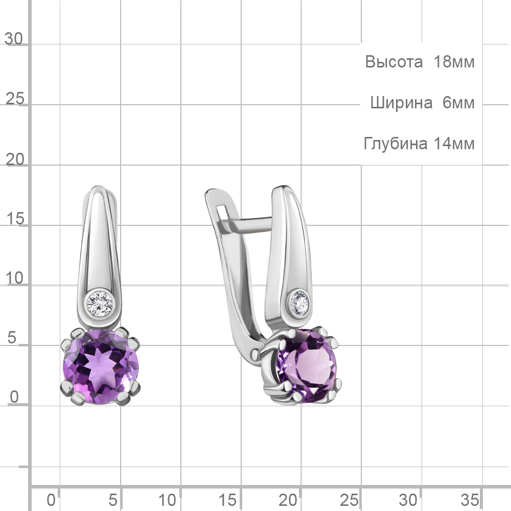 4731604А Серьги из Серебра с аметистами, фианитами